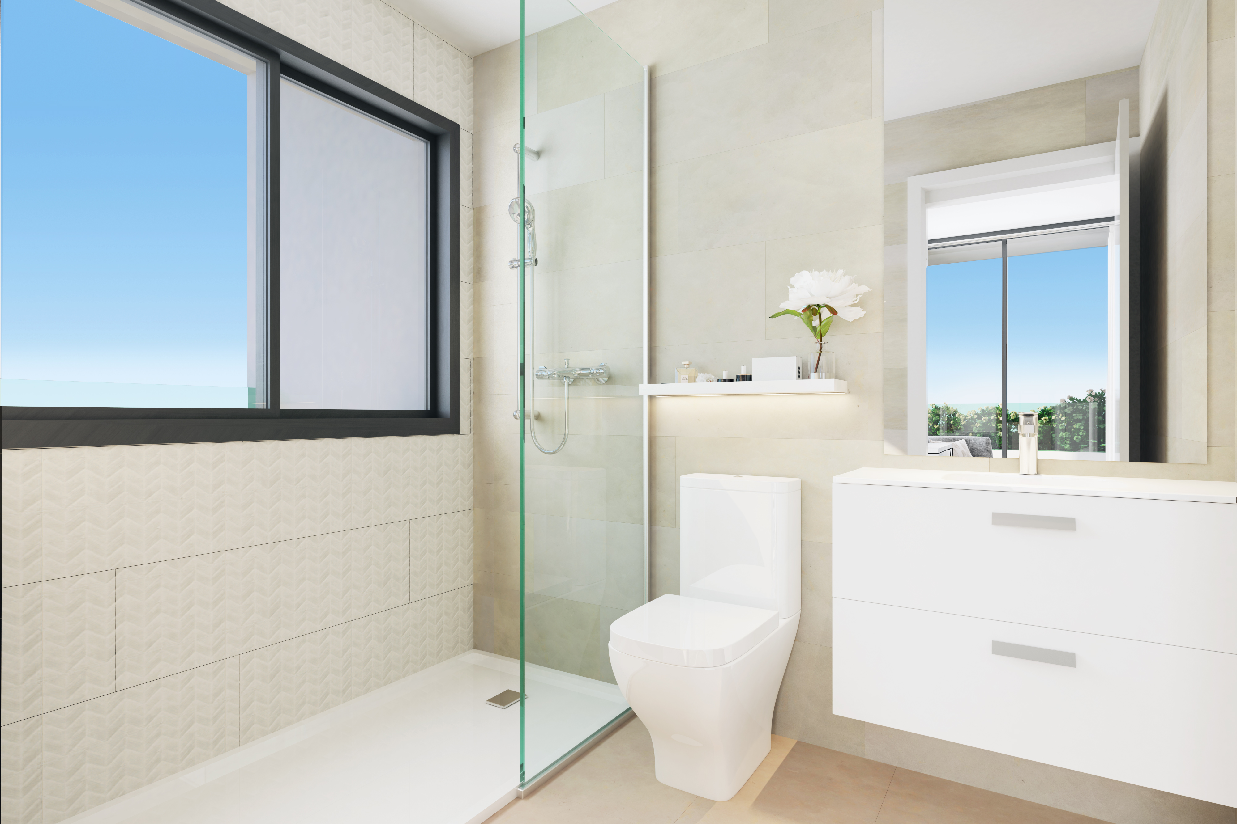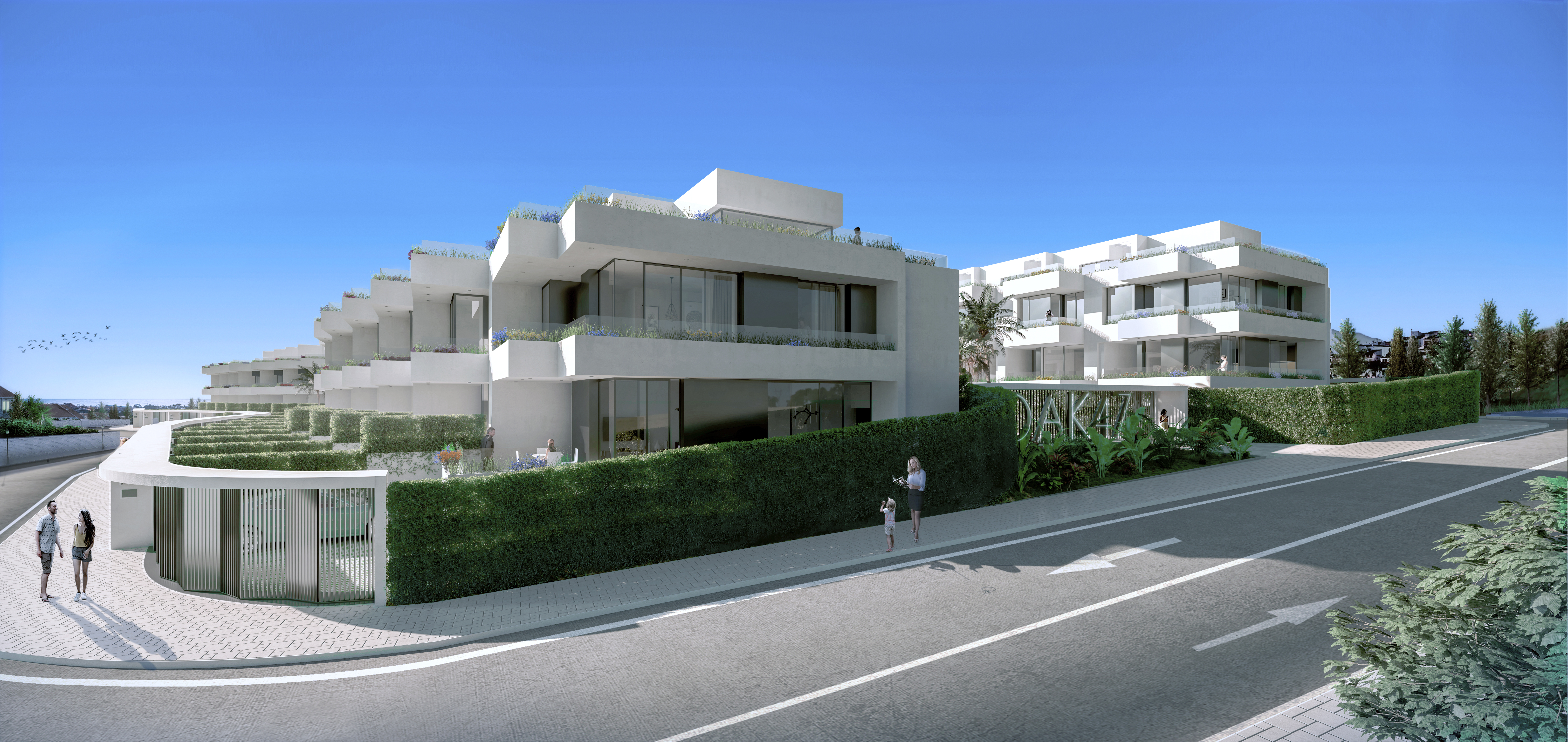Rummelige soveværelser på første sal kommer komplet med indbyggede garderobeskabe og en-suite afhængigt af den valgte konfiguration. Det store soveværelse har et walk-in klædeskab og en omfattende wrap-around terrasse med dobbelt aspekt vinduer og døre for at optimere den smukke udsigt. På tagterrassen kan du skabe din egen private helligdom - et sted at slappe af og flade ud året rundt solskin.