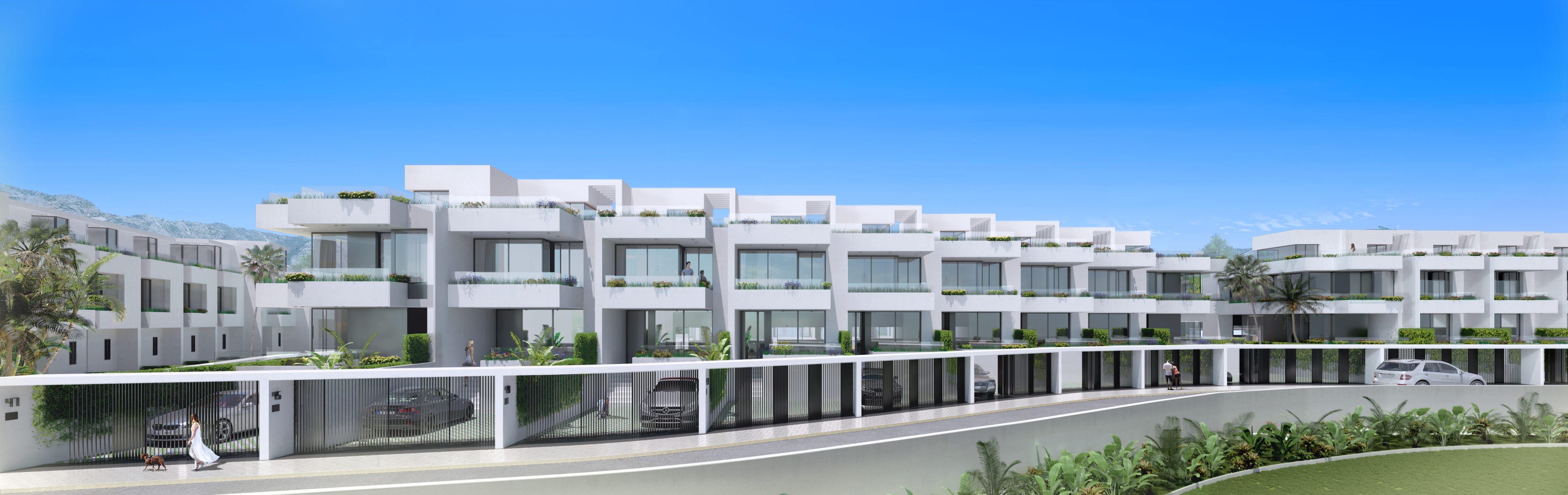 Dette er et elegant boligkomplex bestående af moderne 3-værelses byhuse kun 3 minutters gang fra stranden i Fuengirola og Mijas Costa.