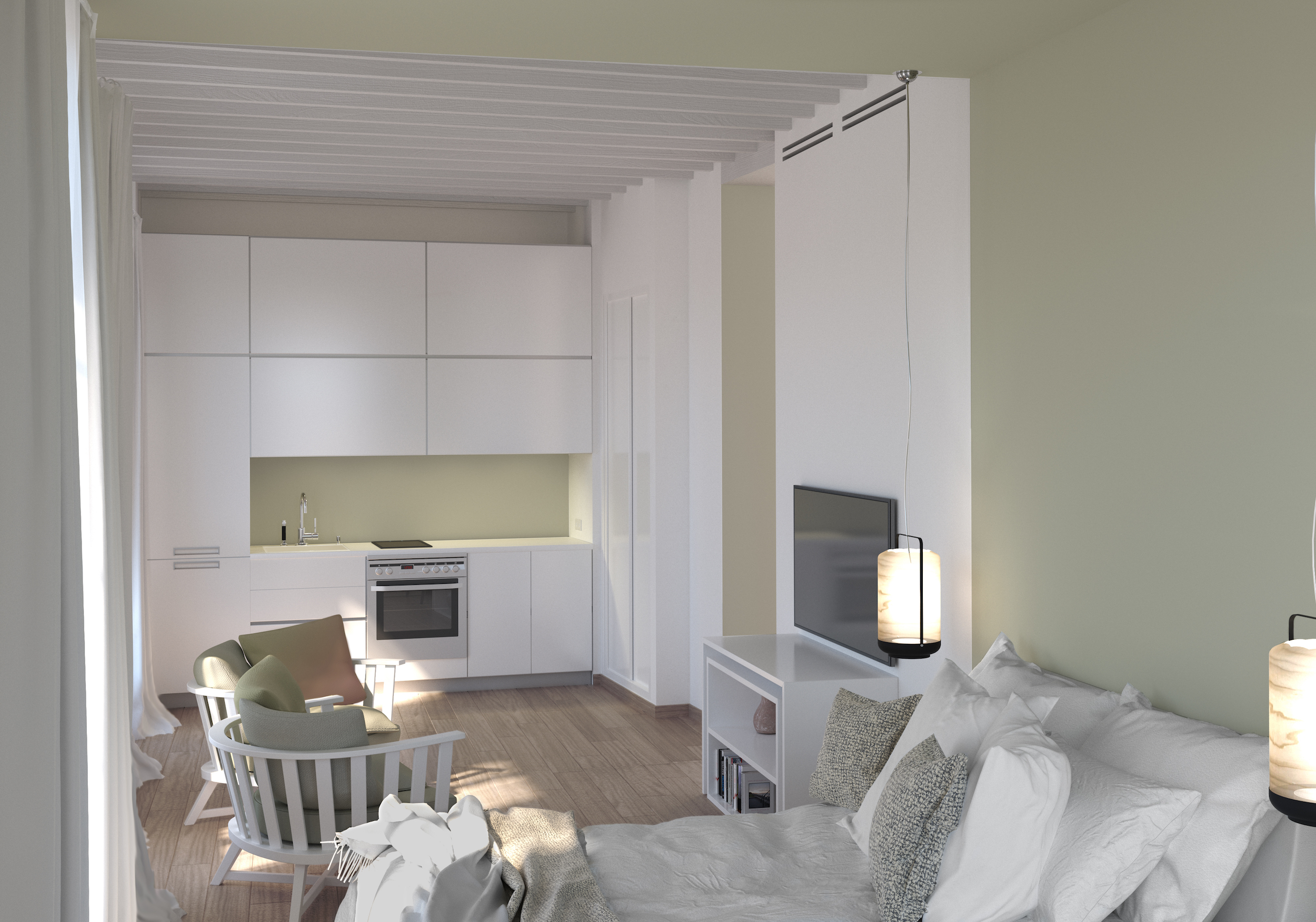 Alle lejligheder har et moderne design med respekt for de traditionelle elementer i den eksisterende bygning. De er lyse med højt til loftet, der giver en unik følelse af rummelighed, luksus og elegance.