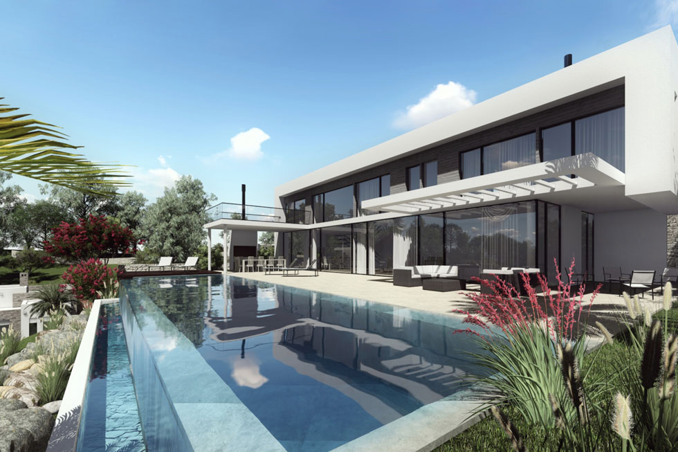Denne fantastiske 4-værelses villa er designet af en arkitekt der er berømt for at kombinere frisk moderne design og miljøvenlige byggeprocesser for at skabe et boligareal, der gør mest muligt ud af et liv ved middelhavet; vidunderlig udsigt, masser af indendørs naturlig belysning og en række udendørs faciliteter. Villaen er bygget over 2 etager og vil drage fordel af et fuldt udstyret moderne køkken og et åbent stue-/spisestueområde, et rummeligt soveværelse og 3 ekstra soveværelser med eget badeværelse og monterede skabe. Fællesområderne omfatter et trædæk, overdækkede terrasser, en smuk stor privat swimmingpool og uafbrudt udsigt over de omkringliggende dale og Middelhavet. Villaen er også tilgængelig i en deluxe version, som indeholder en kælder med plads til en hjemmebiograf, legerum, fitnesscenter og sauna.