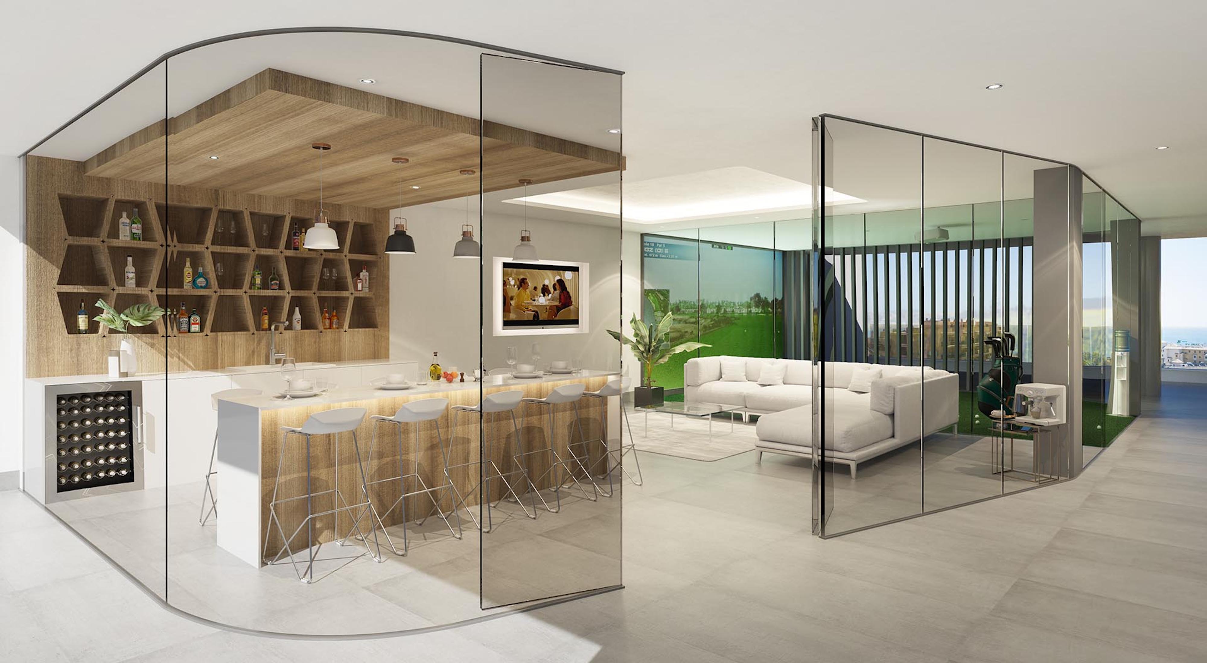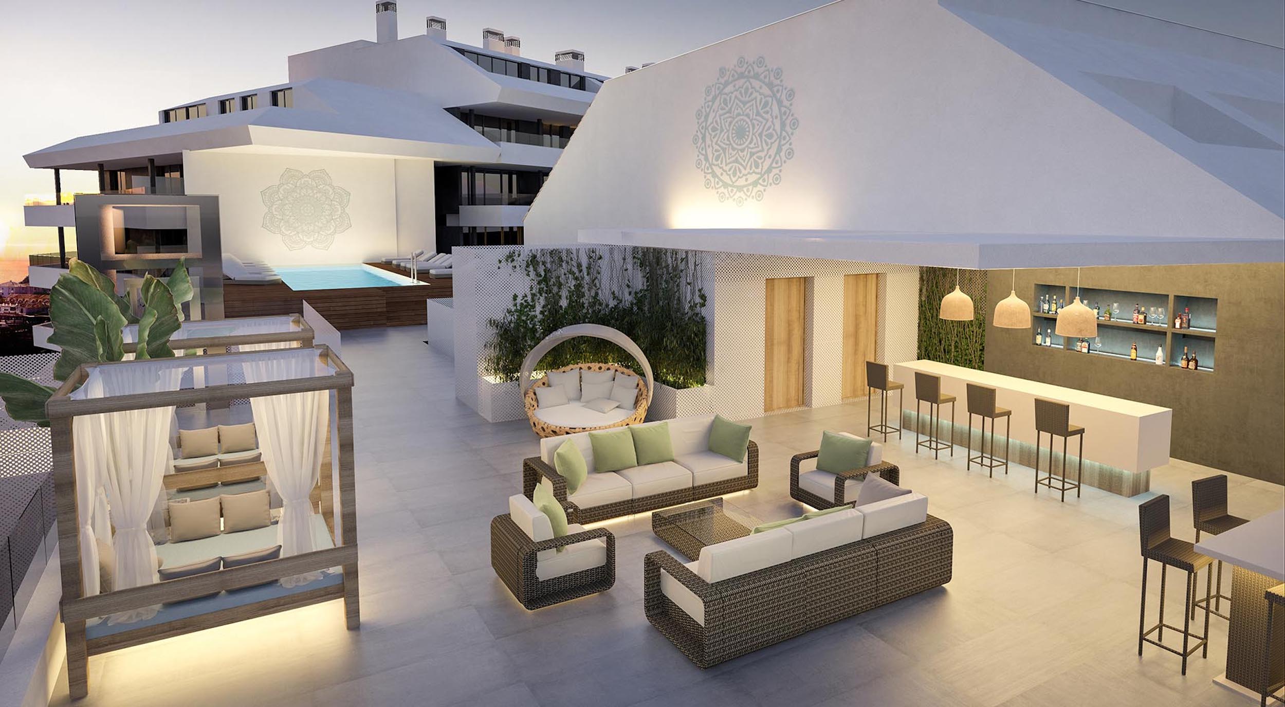 Du vil elske den sømløse overgang fra indendørs til udendørs, både fra fællesområder og fra de store soveværelser. Din terrasse bliver en udvidelse af dit hjem. Om dagen kan du slappe af i solskinnet med udsigt til Afrika og om natten kan du spise under stjernerne med lavt humørbelysning.