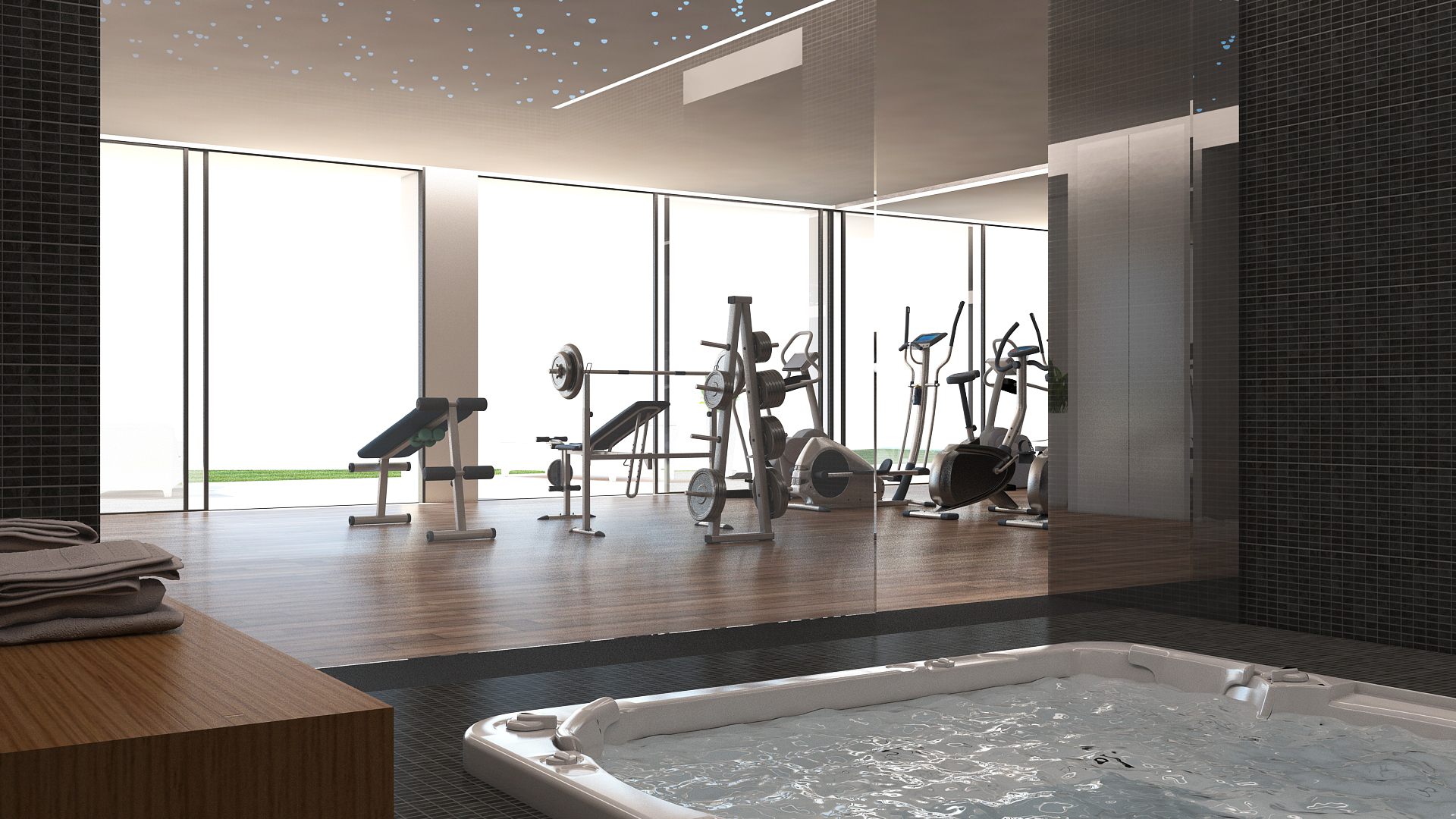 Komplekset vil være udstyret med en udendørs swimmingpool, der er omgivet af et stort solarium og hyggelige minimalistiske haver samt et spa-område med sauna, tyrkisk bad, jacuzzi og træningsrum.
