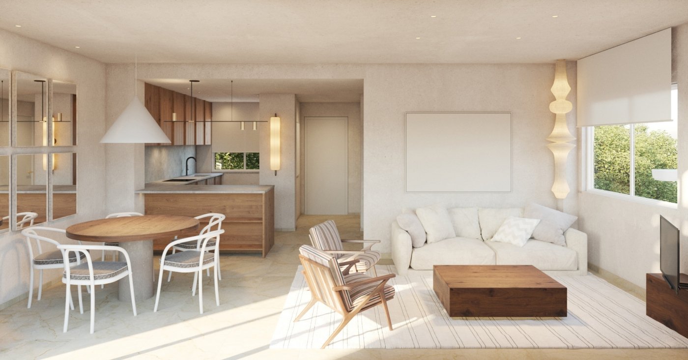 The 3-bedroom homes include a porch and solarium with pergola, private garden and basement, as well as 2 parking spaces in the basement. In addition, this residential has a swimming pool and common gardens.