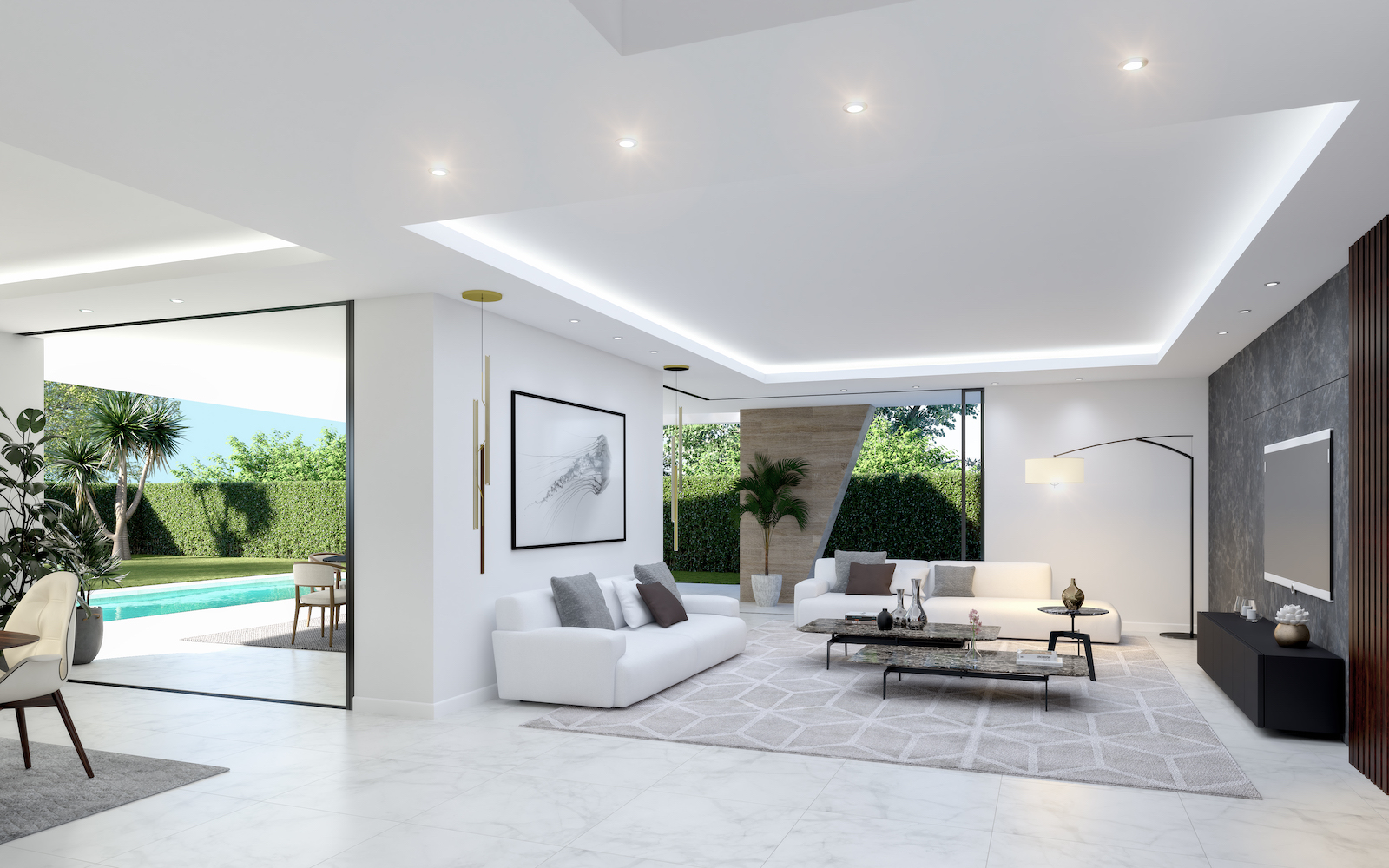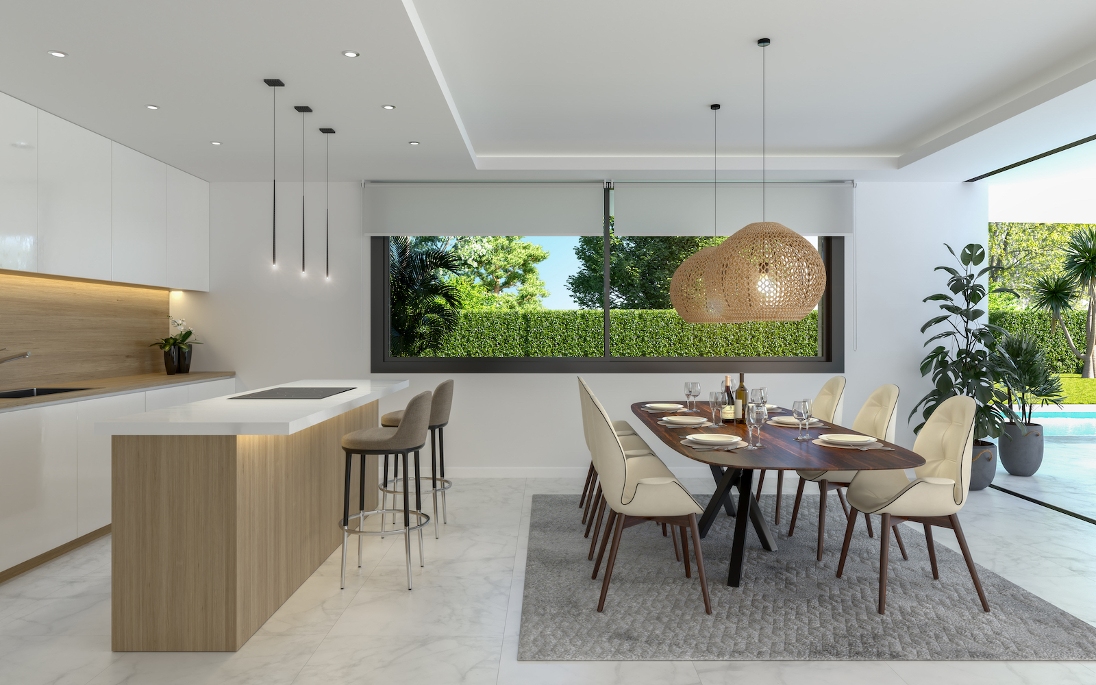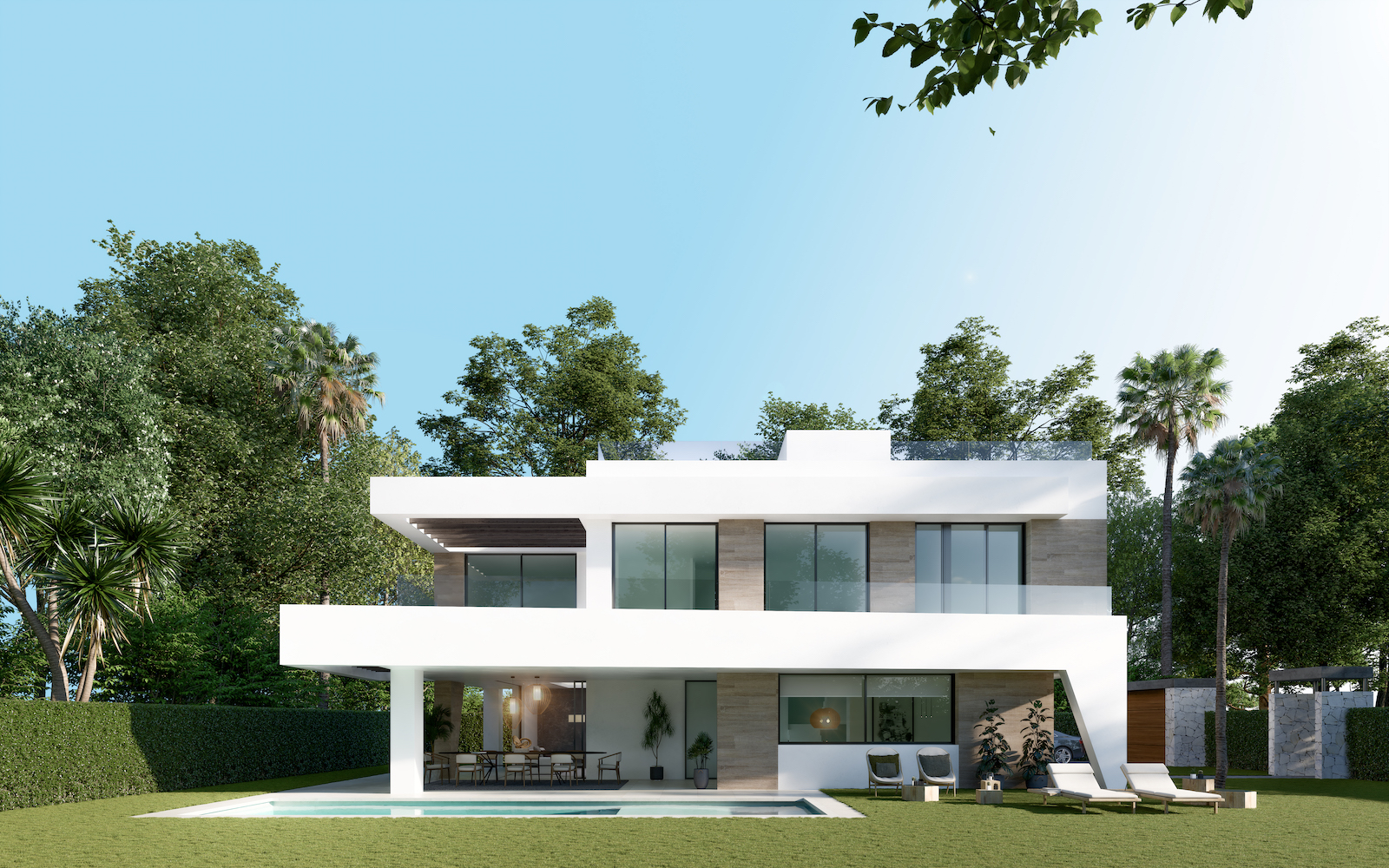 Villaerne er vidunderligt designet og har store åbne boligarealer, der forbinder det bedste fra indvendige og udvendige boligarealer ved hjælp af store vinduer, natursten og materialer af høj kvalitet overalt.