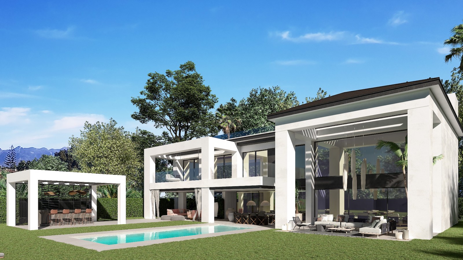 Dette er et enestående projekt med 3 luksuriøse villaer i moderne stil, der nyder en privilegeret situation kun 50 meter fra stranden og en kort afstand fra Puerto Banús og Marbella.