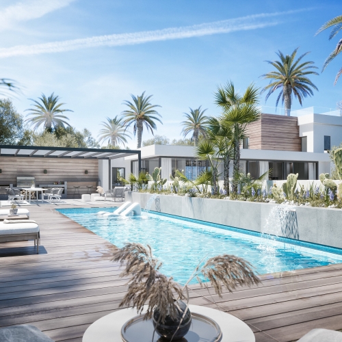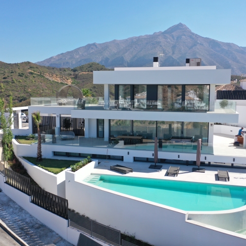 Husets elegante og moderne design suppleres med den nyeste teknologi og de højeste standarder for kvalitet og finish. De består af 4 soveværelser og 4 badeværelser, køkkener fra Siematic udstyret med den nyeste generation af møbler og NEFF-apparater, stort påklædningsværelse i soveværelse, privat pool i haven og solarium, der nyder en fantastisk havudsigt.