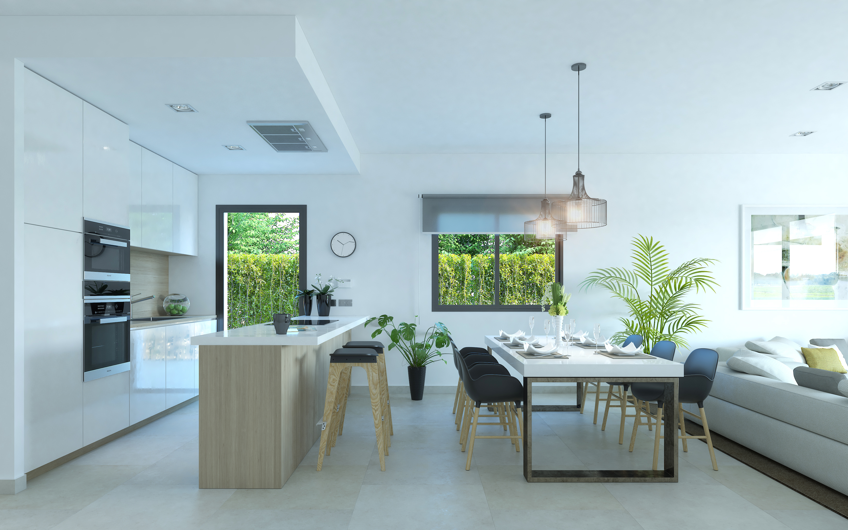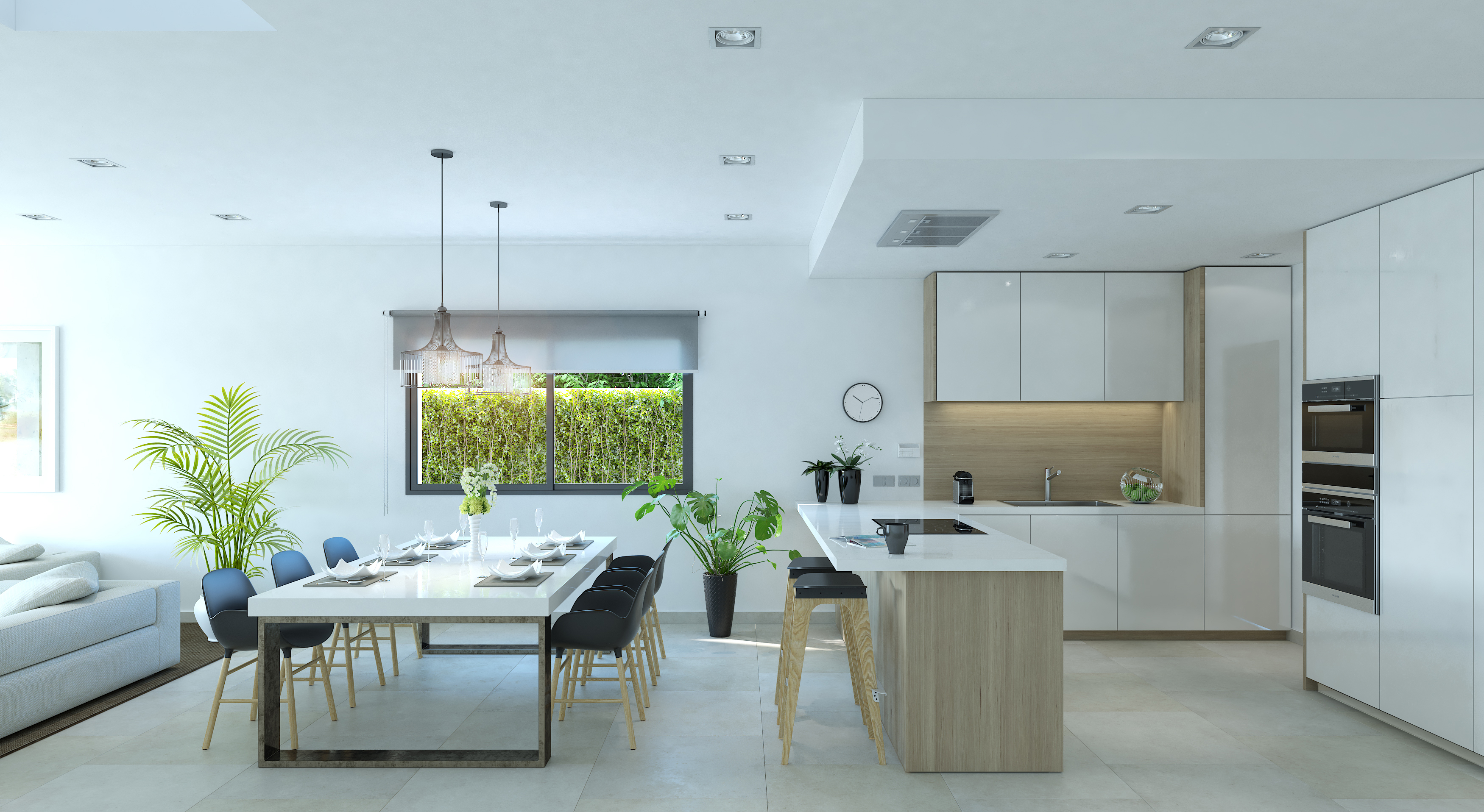 Private grunde på mindst 200 kvm tilsluttet den fælles have og pool området. Hver bolig er færdig med en meget høj standard, porcelæn stort format gulve, air condition med uafhængig kontrol i alle værelser, Neff apparater og privat parkeringsplads til 2 biler.
