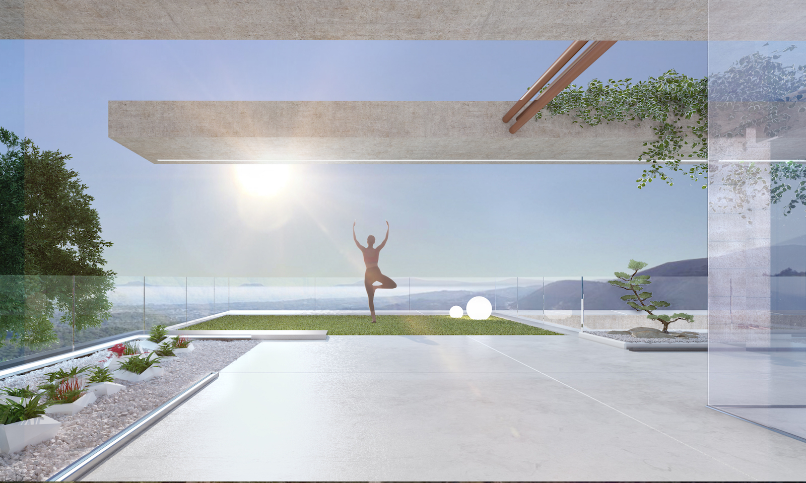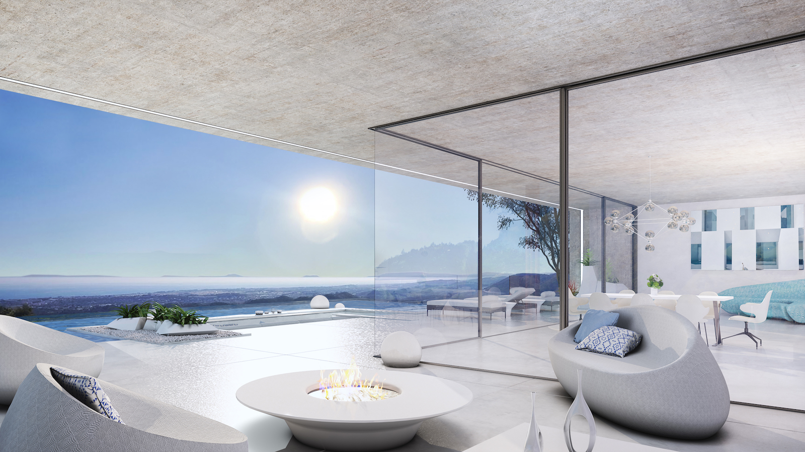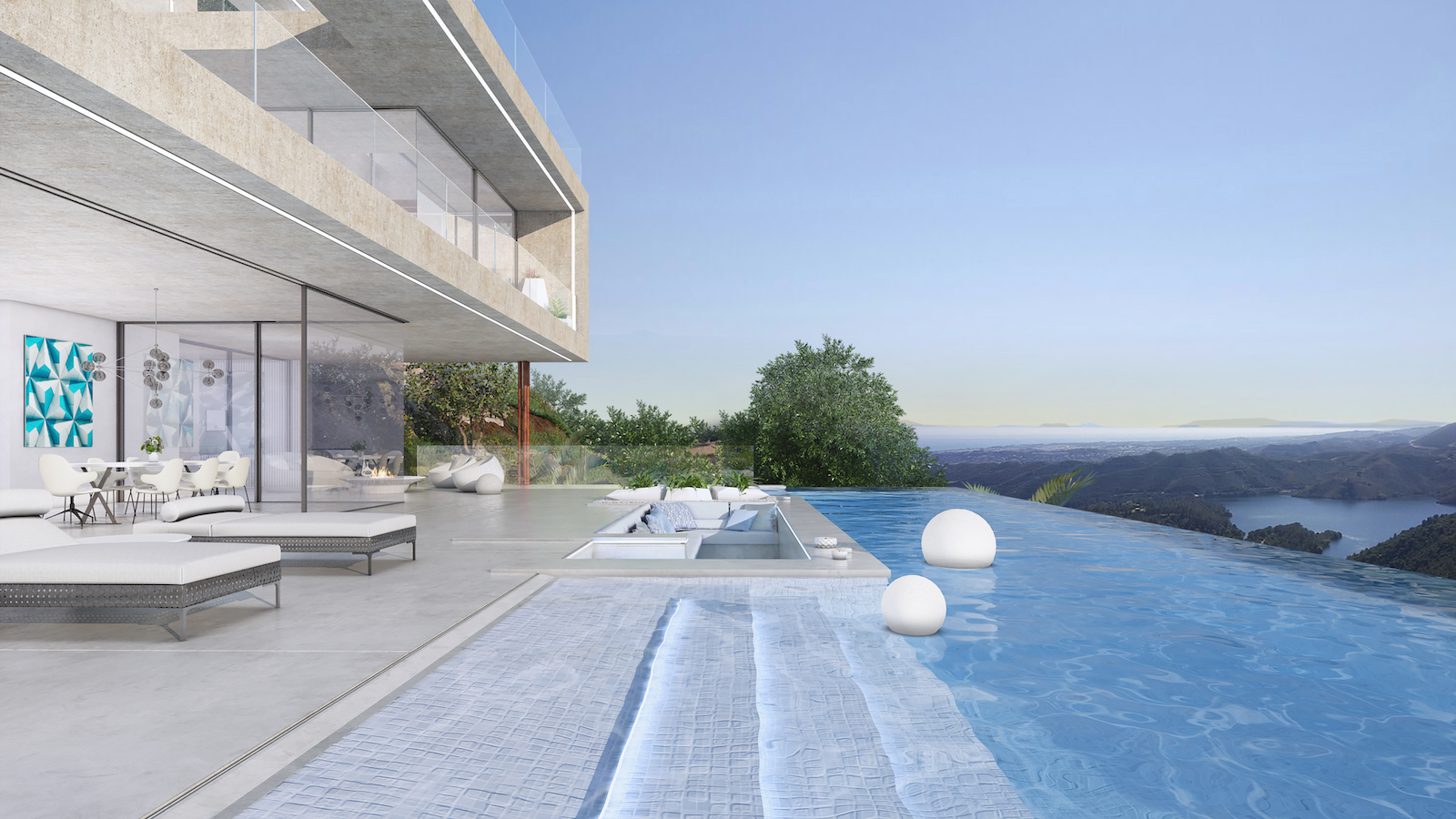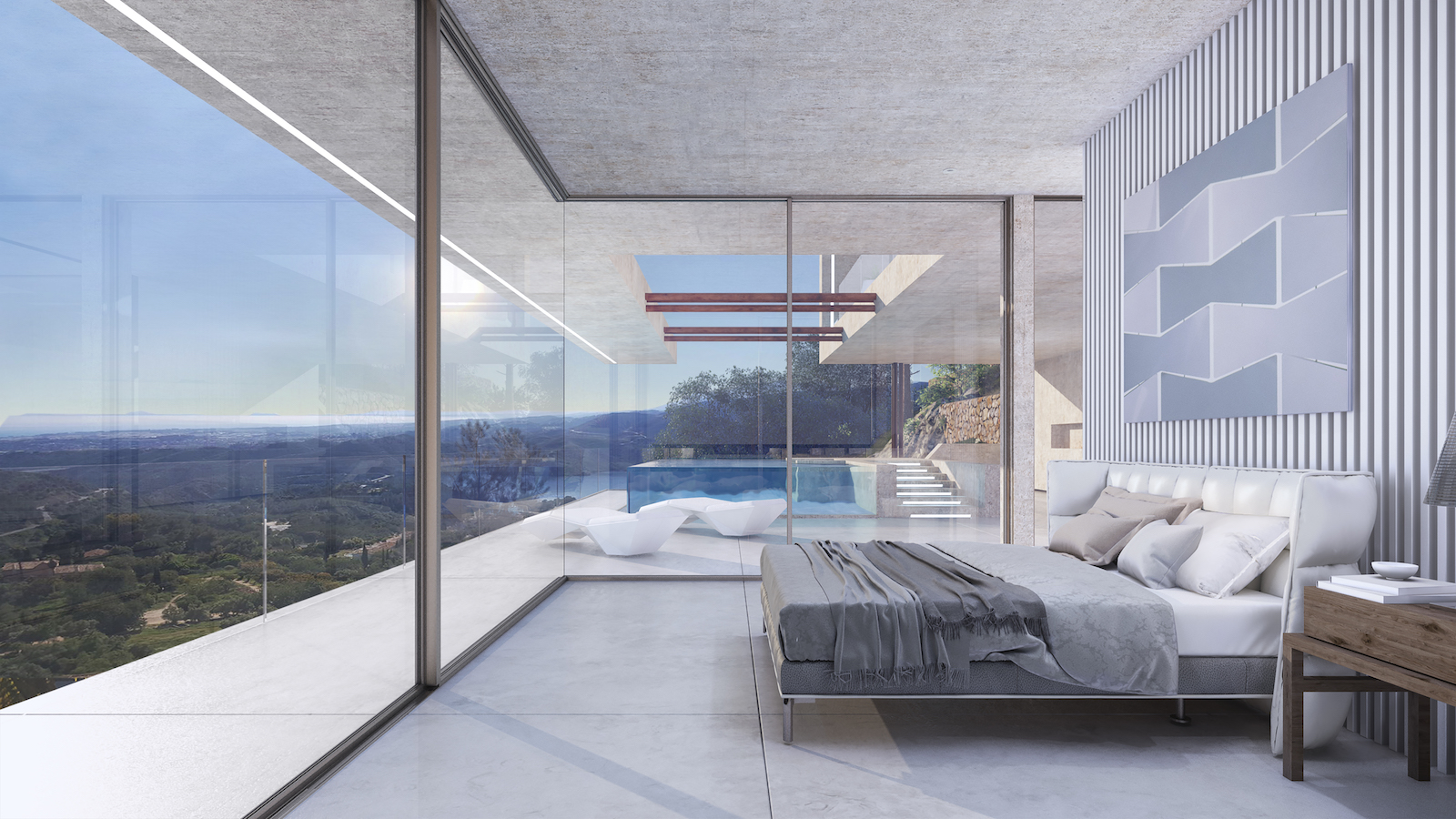 Arkitekturen i Sierra Blanca tog inspiration fra den specille topografi mod det imponerende landskab, der bevæger sig gennem Middelhavet, strækker sig ind i Afrika og forsvinder i horisonten. Trappen er rygraden i huset, der forbinder alle etagerne. Denne rummelige og imponerende villa ligger på 4 niveauer og bliver bygget af de fineste materialer.