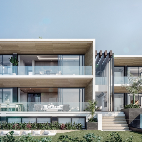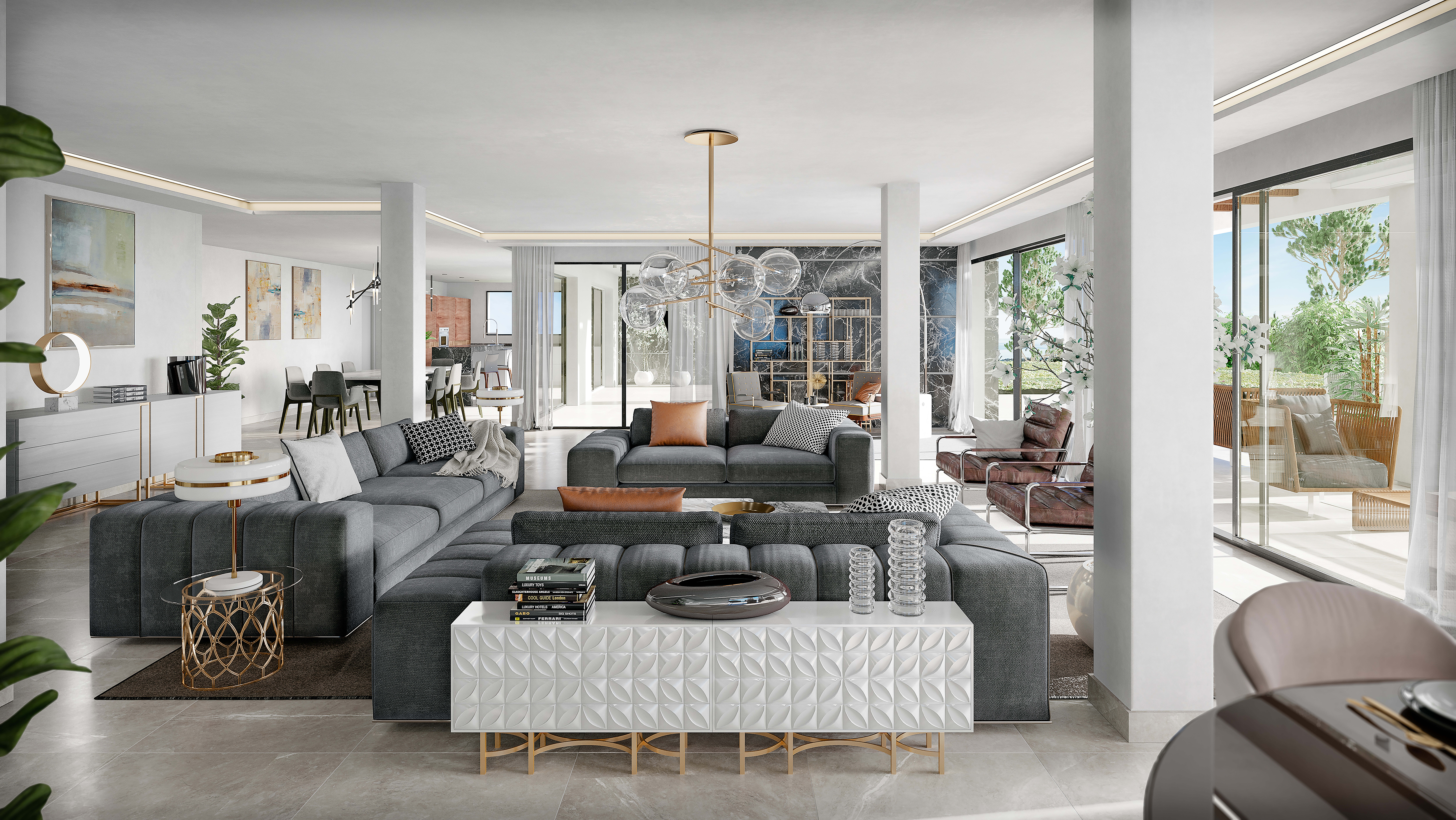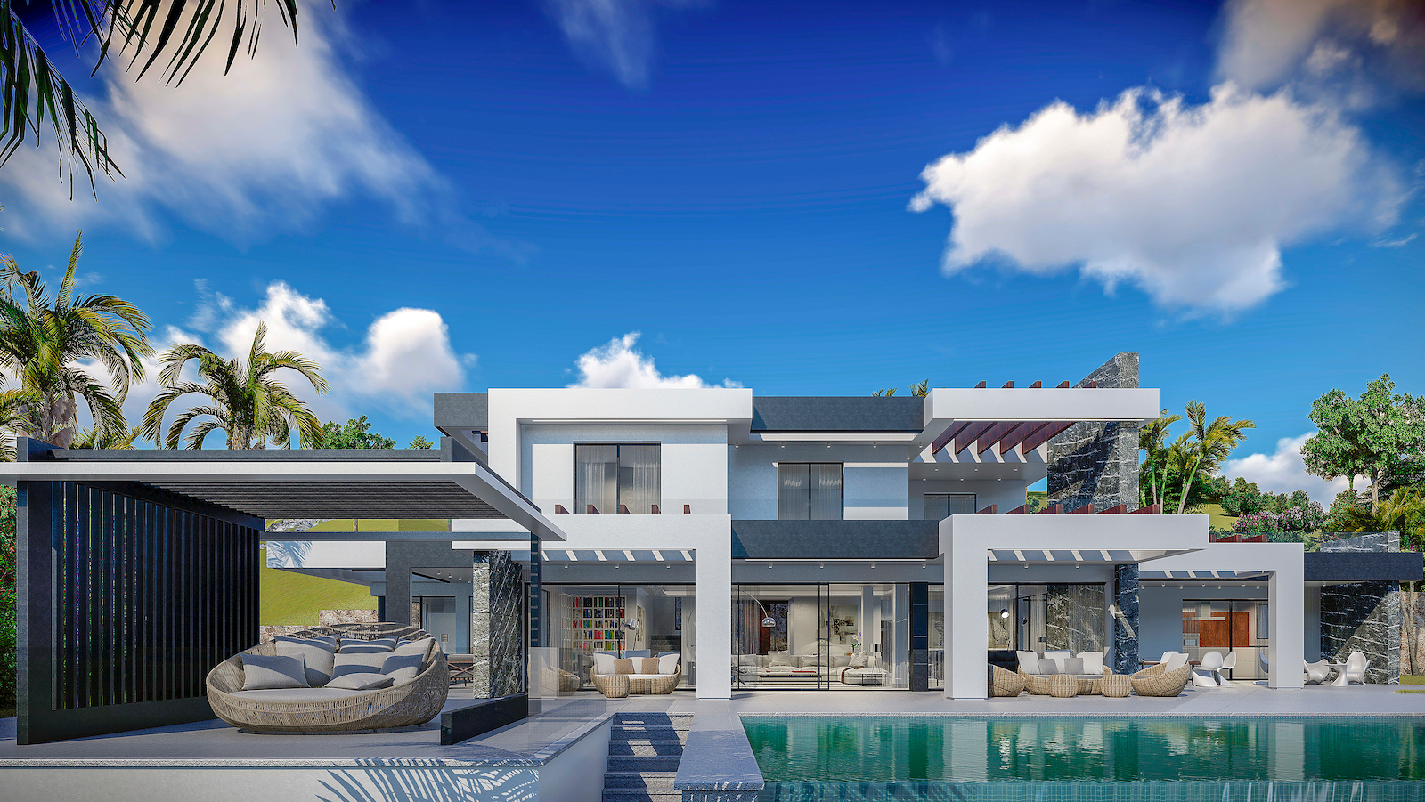 Moderne og stilfuld villa etableret i en dejlig atmosfære. Beliggende på en bakke, hvorfra du kan nyde havudsigten udover Middelhavet. Boligen er omgivet af en oase dannet af golfbaner og grønne områder.