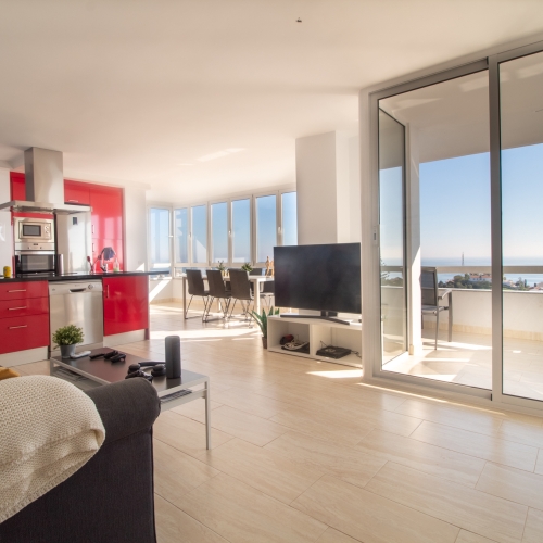 Beliggende i Fuengirola i en forhøjet position, giver disse lejligheder en uovertruffen udsigt og direkte adgang til stranden. Middelhavsudsigten trænger igennem alle områder af feriestedet, uanset om man vandrer igennem de frodige haver, hviler ved poolerne eller bor i en af de 39 sydvendinger eller penthouses.