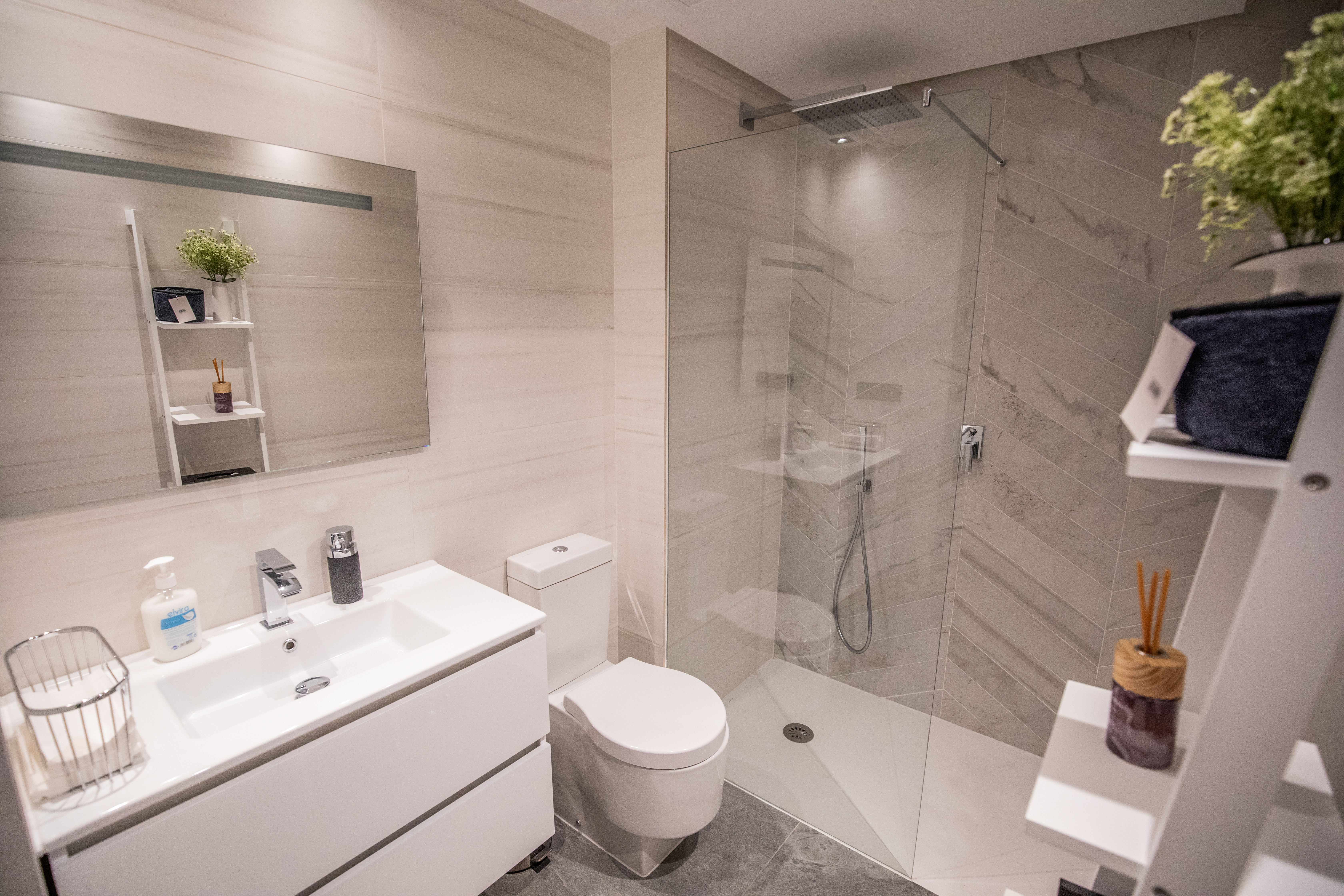 Rummelige stueetagehjem med haver og duplex-penthouses fordelt over 3 elegante bygninger med kun 3 etager, beliggende i et lukket område med haver og fælles pool.