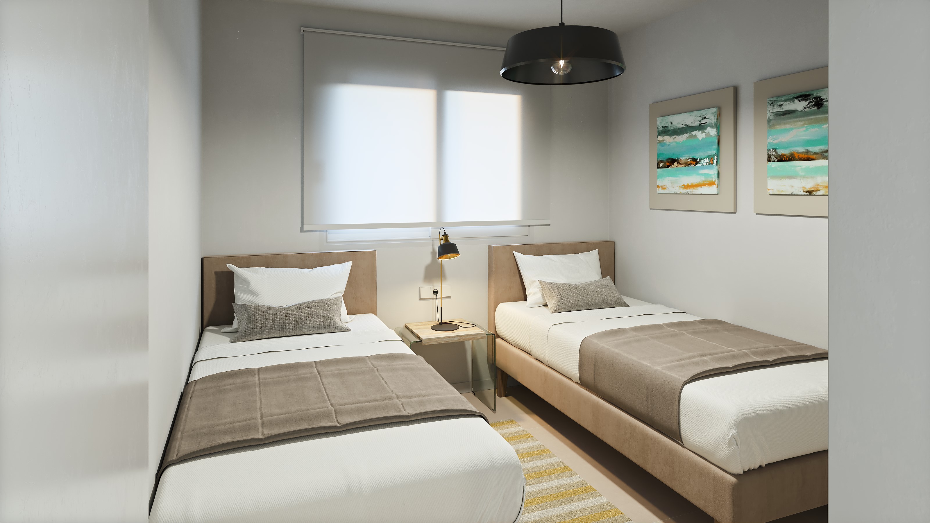 Pinars de Murada R7 is located 900 meters from the beach, next to Calas de Mallorca in Manacor. The residencial complexe offers you up or down apartments and detached villas with large private terraces designed to enjoy the sun and live outdoors. The owners will have access to spacious communal areas that include a 400 m2 pool with aquatic beds surrounded by a 2,800 m2 sunbathing area. In addition, Pinars de Murada offers an exclusive social club with a sauna and heated Jacuzzi, a lounge with a cafeteria, a TV room and children's playground.