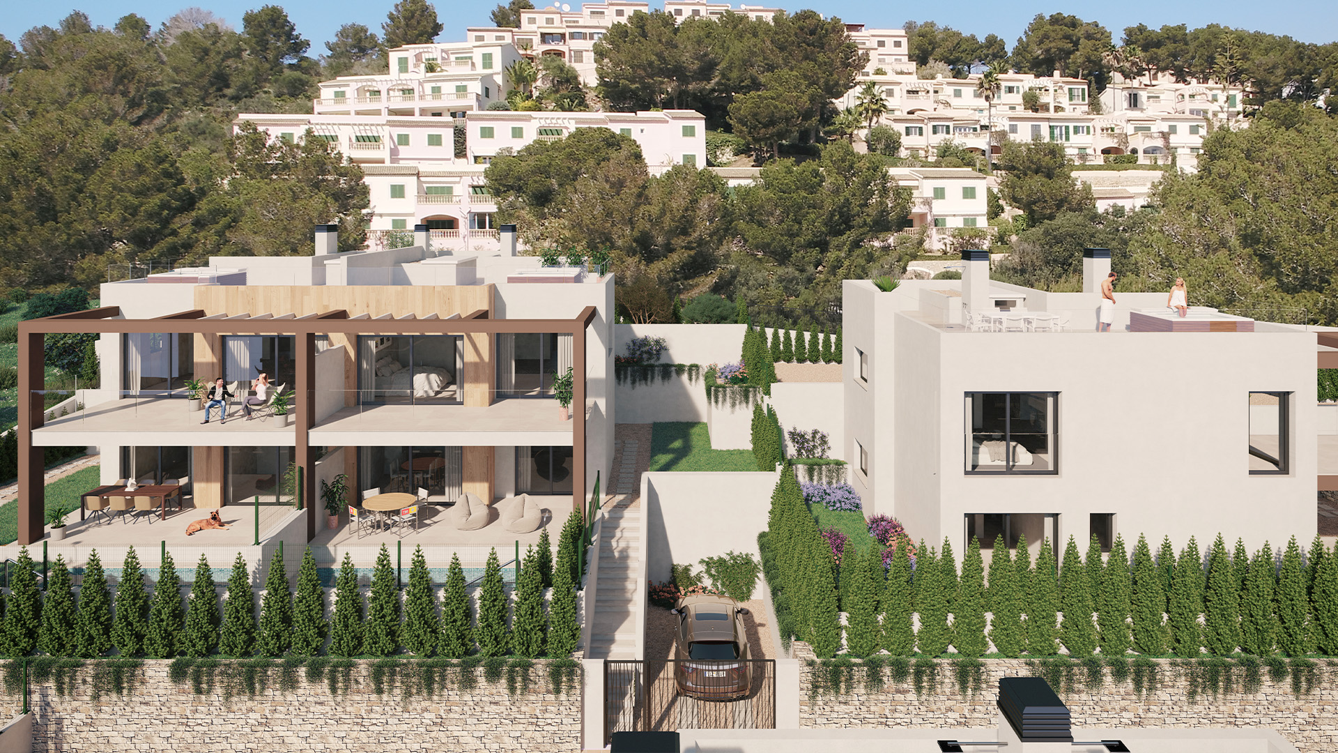 Essence of Sa Cala består af 42 boliger, 31 af dem findes i 2 lejlighedsblokke, hvor lejlighederne har 2 til 3 soveværelser. Derudover er der 11 dobbelthuse eller parcelvillaer som består af 2 til 3-værelses enfamiliehuse. Hvis du leder efter en lejlighed, kan du vælge mellem en i stueetagen, en på første sal eller en penthouse med solarium. Alle lejligheder har en parkeringsplads og depotrum, som er inkluderet i prisen. Leder du efter et enfamiliehus, kan du vælge mellem et dobbelthus eller en parcelvilla. Alle er fordelt på 2 etager. Udover selve boligen er der også en tagterrasse, en have og en privat parkeringsplads på din egen grund.