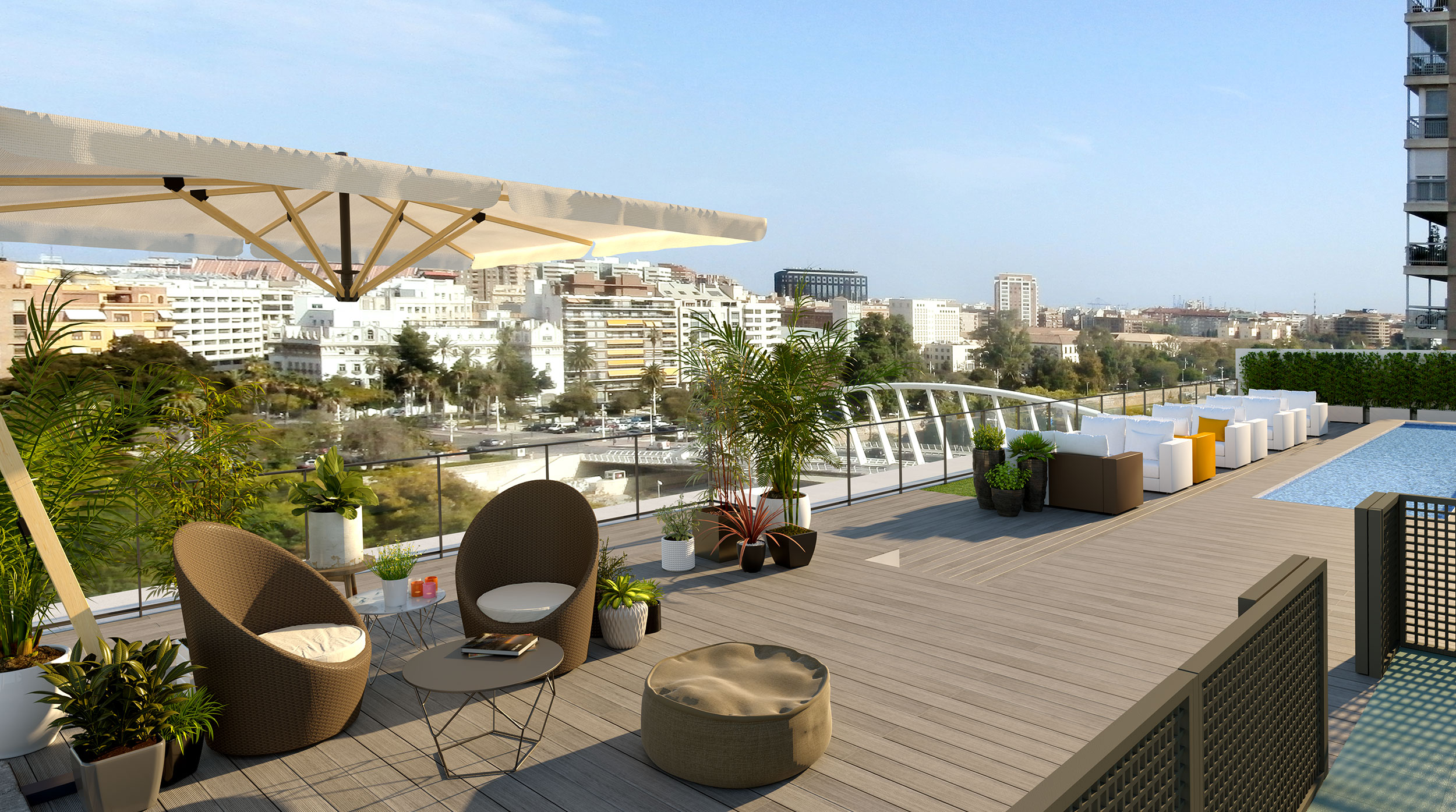 Projektet har et stort multifunktionelt rum til social brug, udstyret fitnessrum, eksklusivt solarium med hvilemøbler, børnemøbler, vandpark, hvor man kan nyde hyggelige øjeblikke med afslapning ... Altid med privilegeret panoramaudsigt over både floden, smukke tage og klokke tårne.