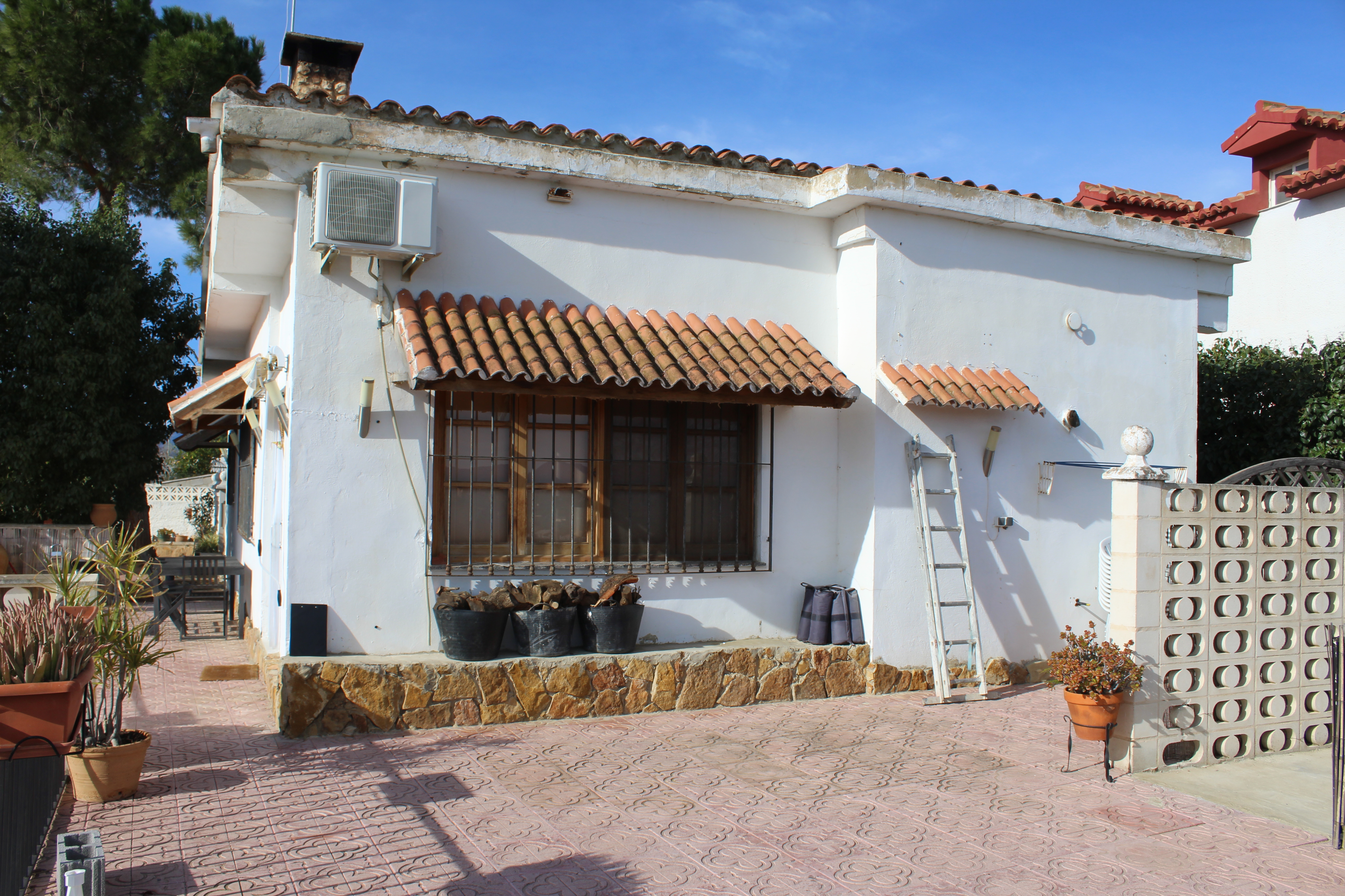950 m2 grund og 120m2 bygget på en etage. Fire soveværelser, to badeværelser, køkken, stue. Pejs, aircondition.