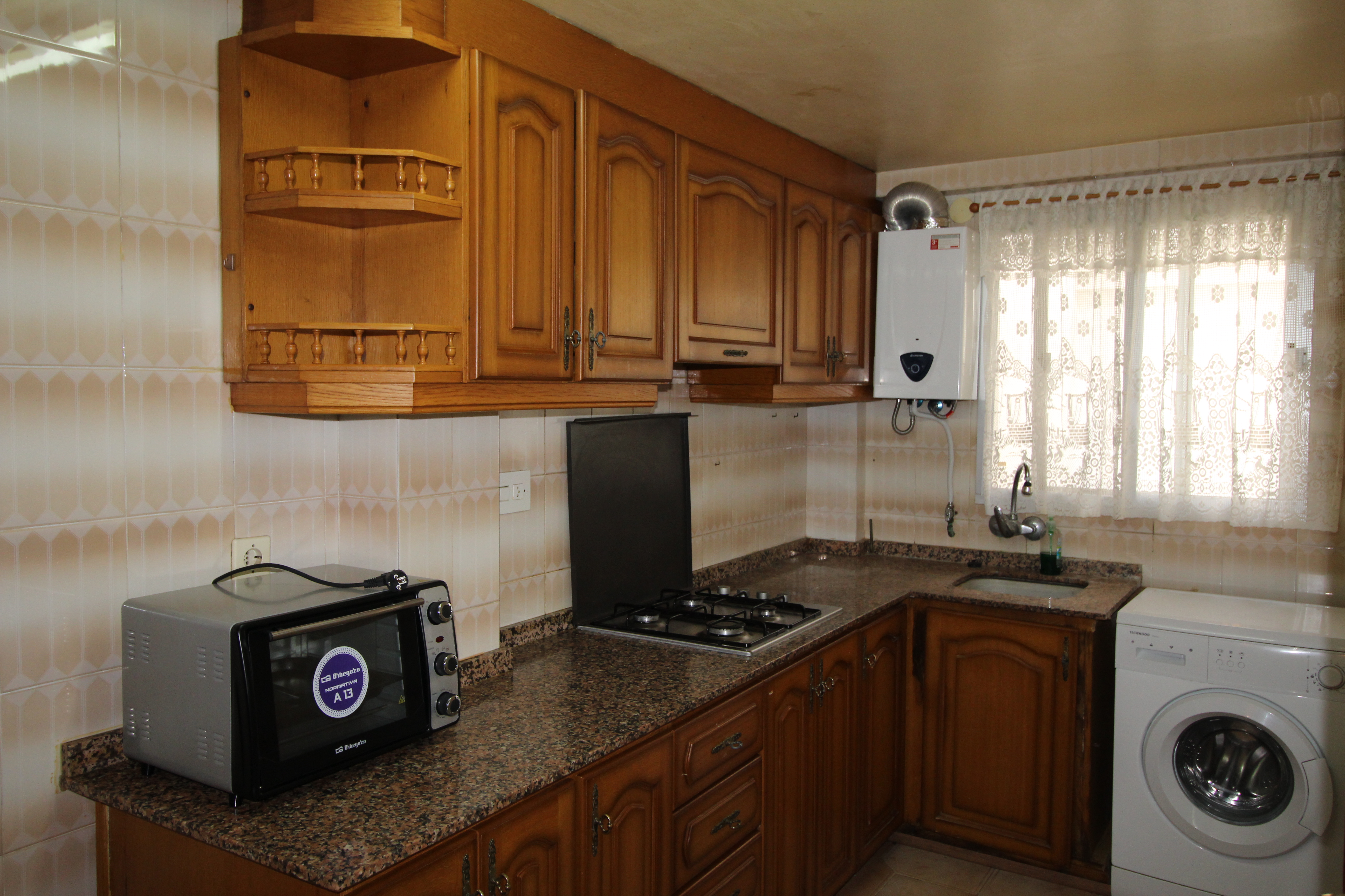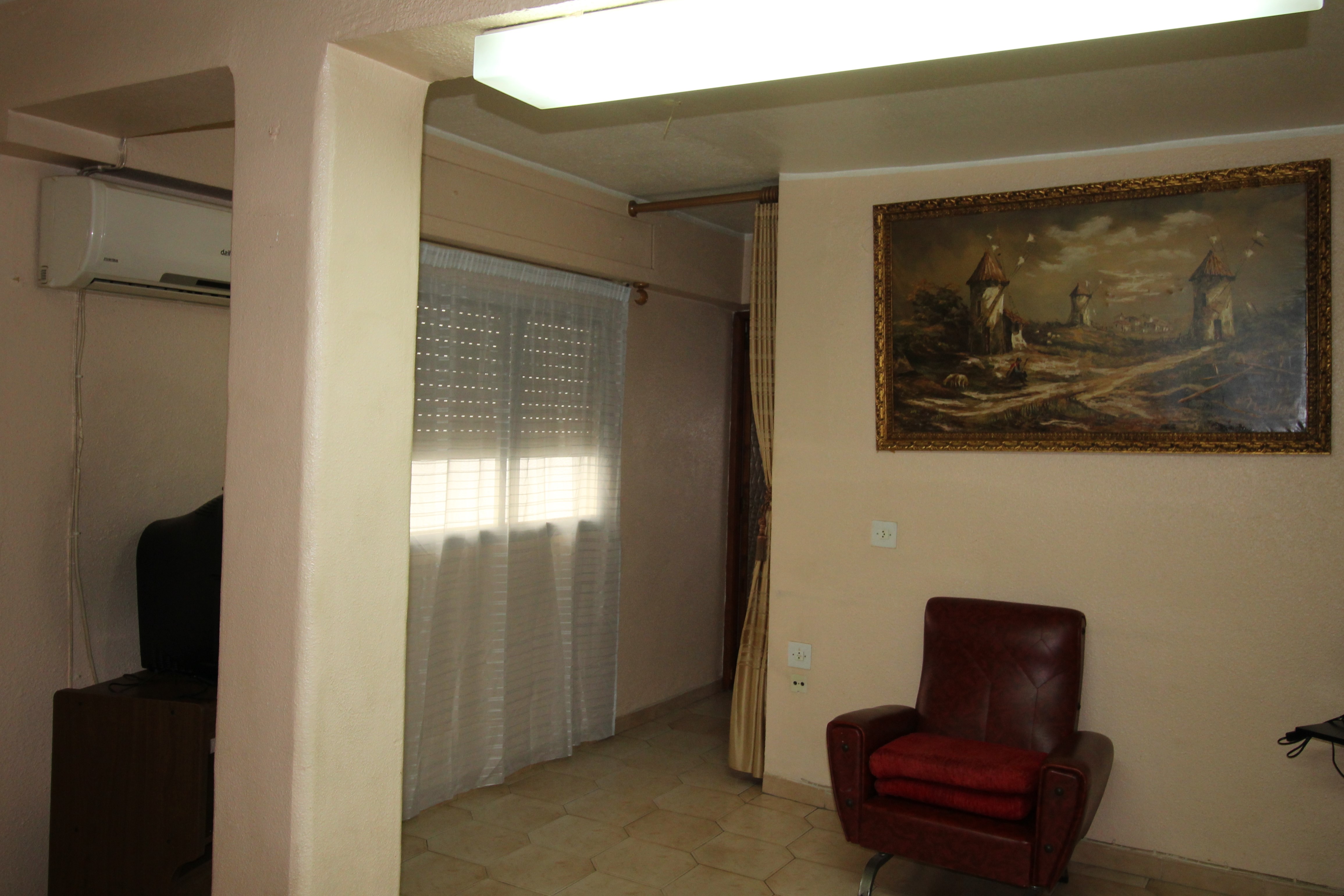 Dens på første sal med en dejlig udsigt. Ingen elevator, men som det er en første sal apt det er ikke så vigtigt. Det har 120m2 overflade, en stue og en spisestue, et badeværelse og et toilet, to soveværelser, køkken. Terrasse og opbevaringsrum i den øverste del af bygningen.