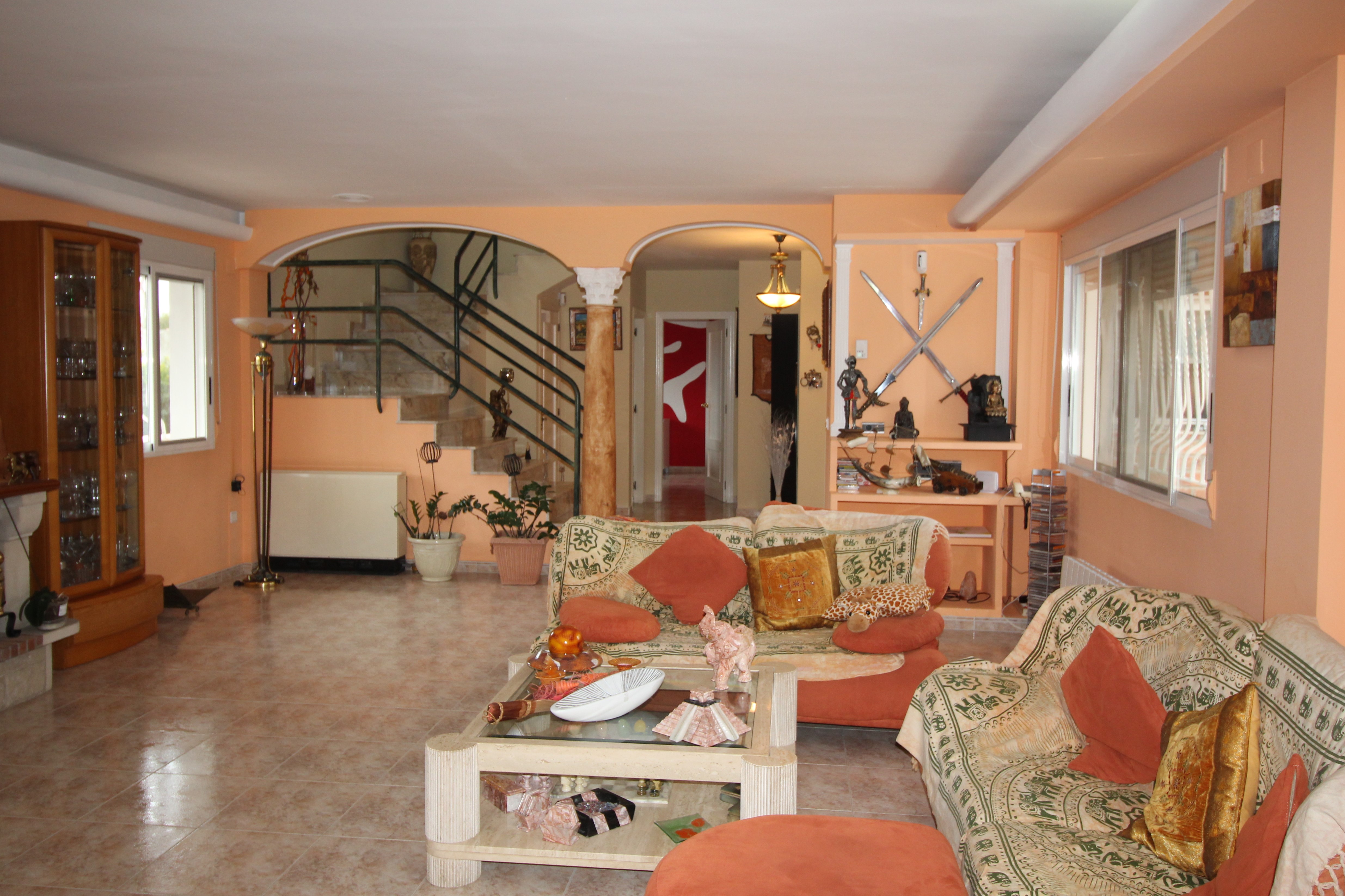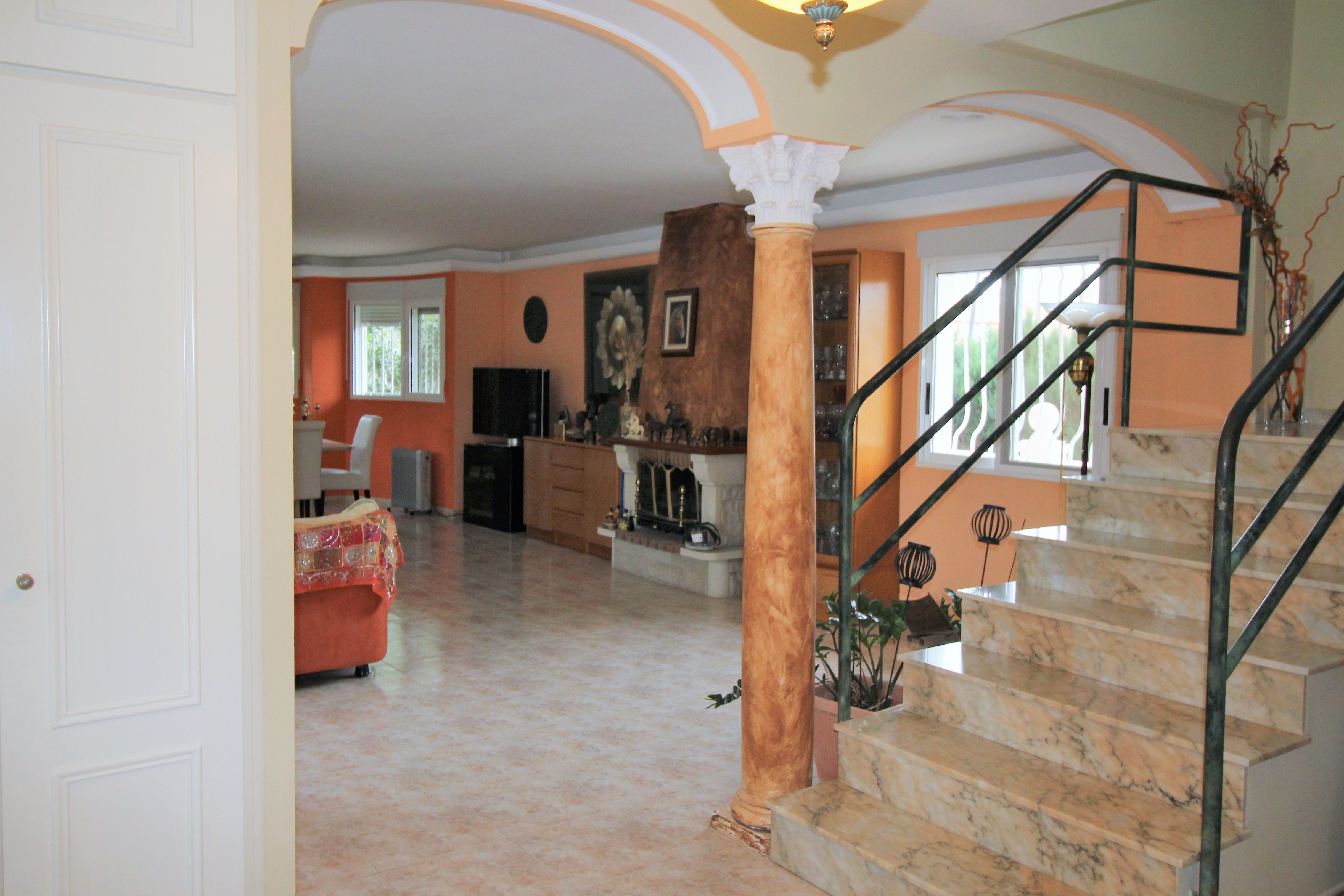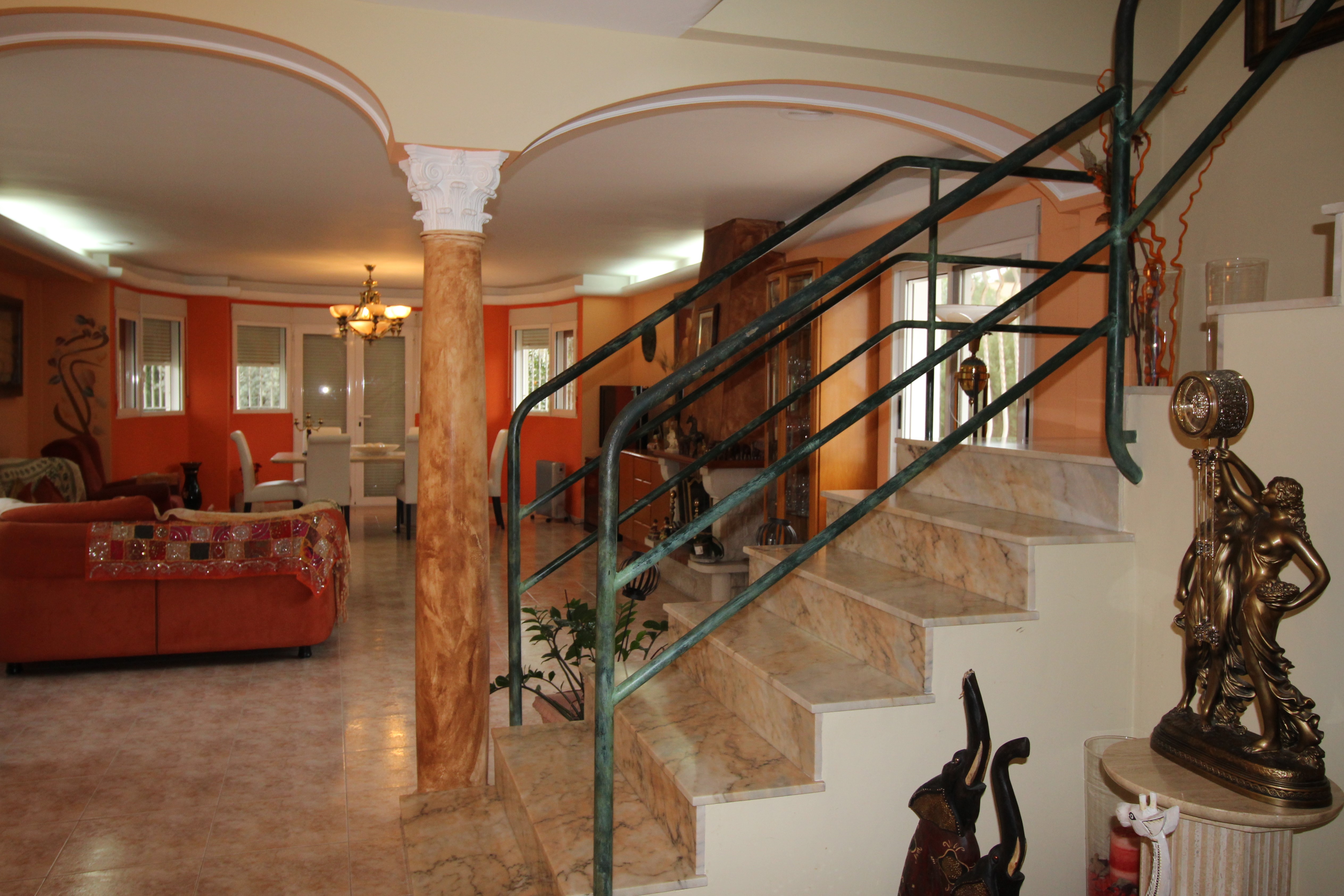 Villaen har 390 m2 bygget på tre etager. Der er pejs, aircondition. Huset har tre store soveværelser med indbyggede garderobeskabe, fire badeværelser, en stor stue på 60 m2 med smuk udsigt over haven. Fuldt udstyret køkken med adgang til overdækket terrasse og pool.