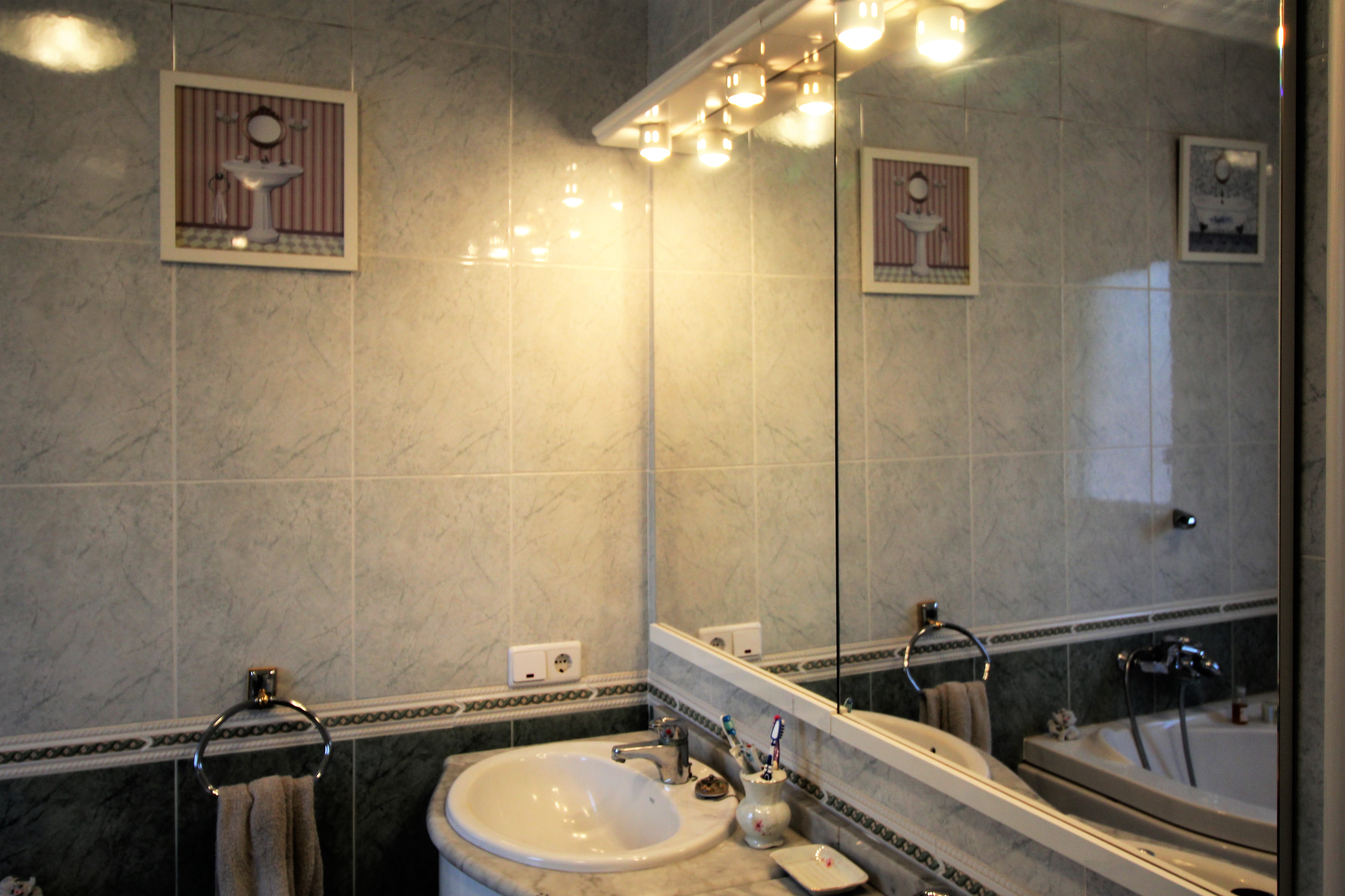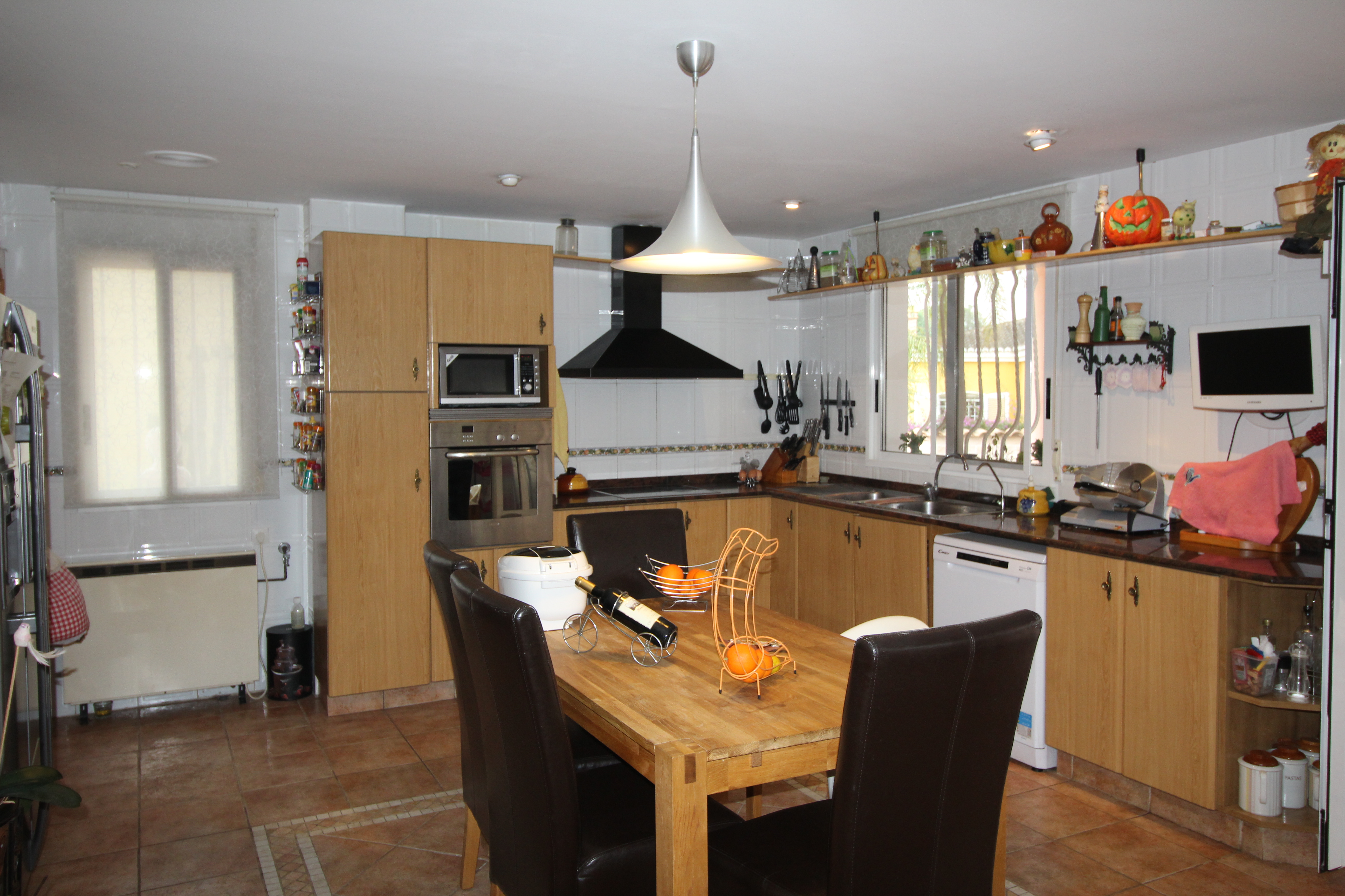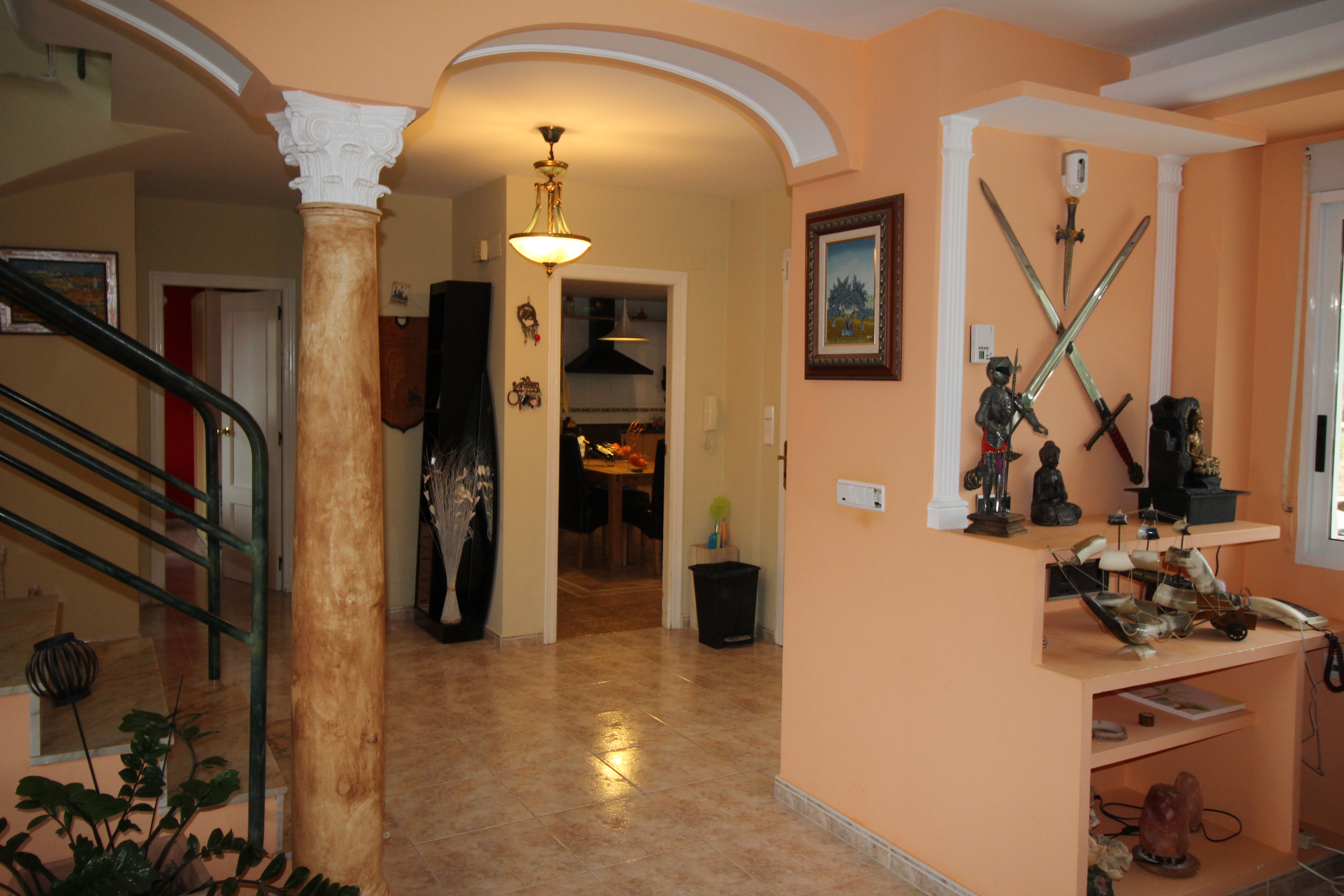 Villaen har 390 m2 bygget på tre etager. Der er pejs, aircondition. Huset har tre store soveværelser med indbyggede garderobeskabe, fire badeværelser, en stor stue på 60 m2 med smuk udsigt over haven. Fuldt udstyret køkken med adgang til overdækket terrasse og pool.