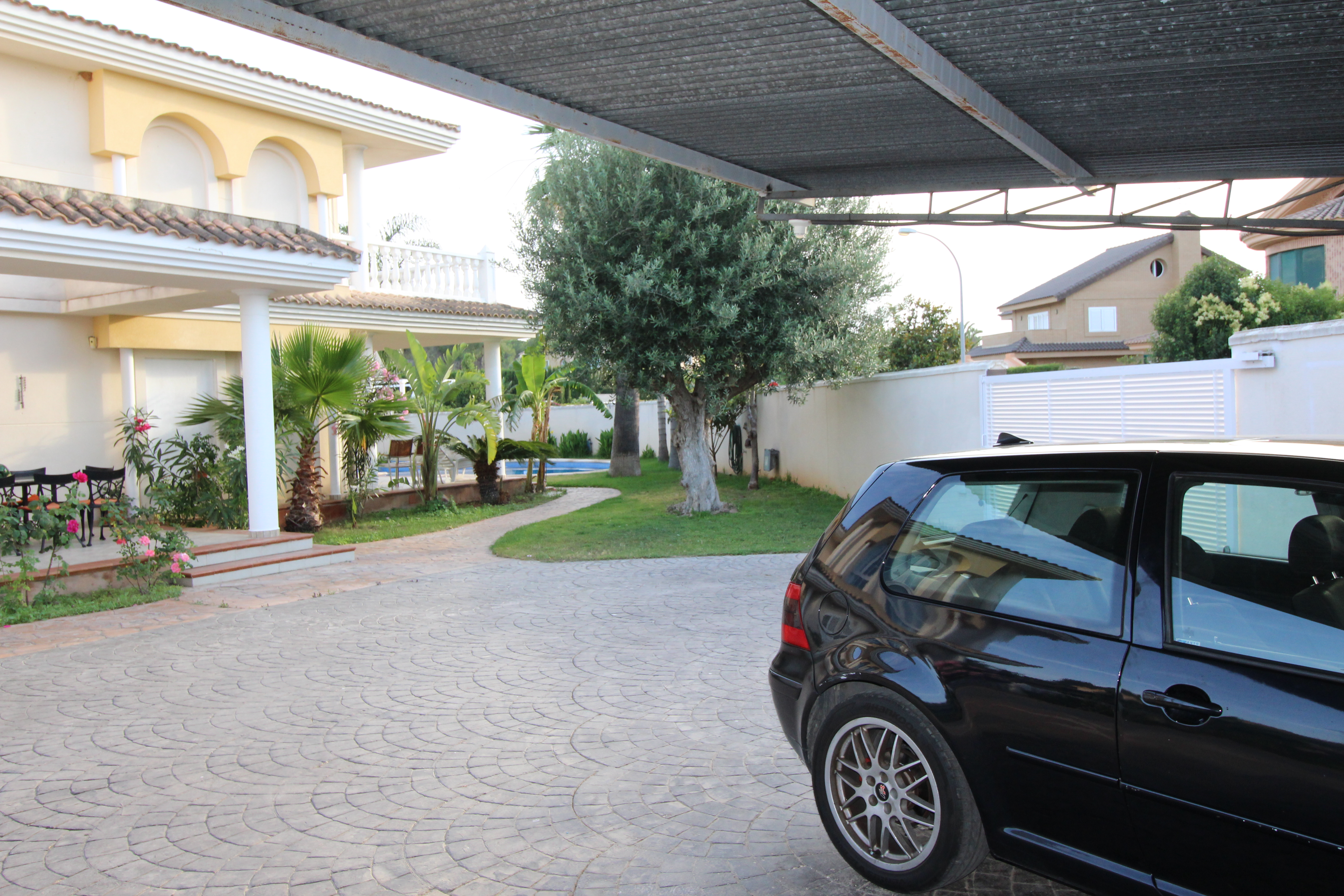 I indkørslen er der et overdækket område med plads til fire biler.