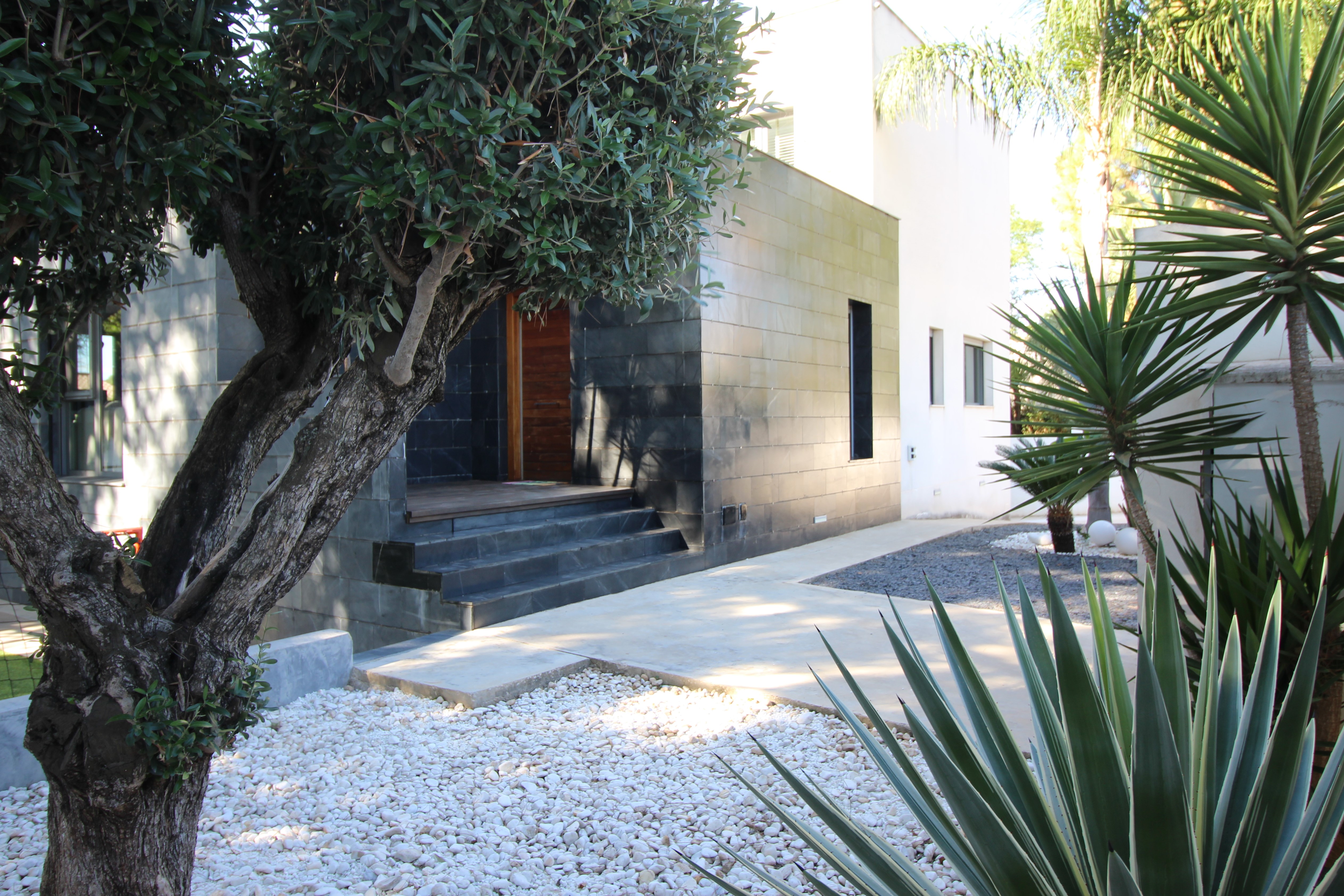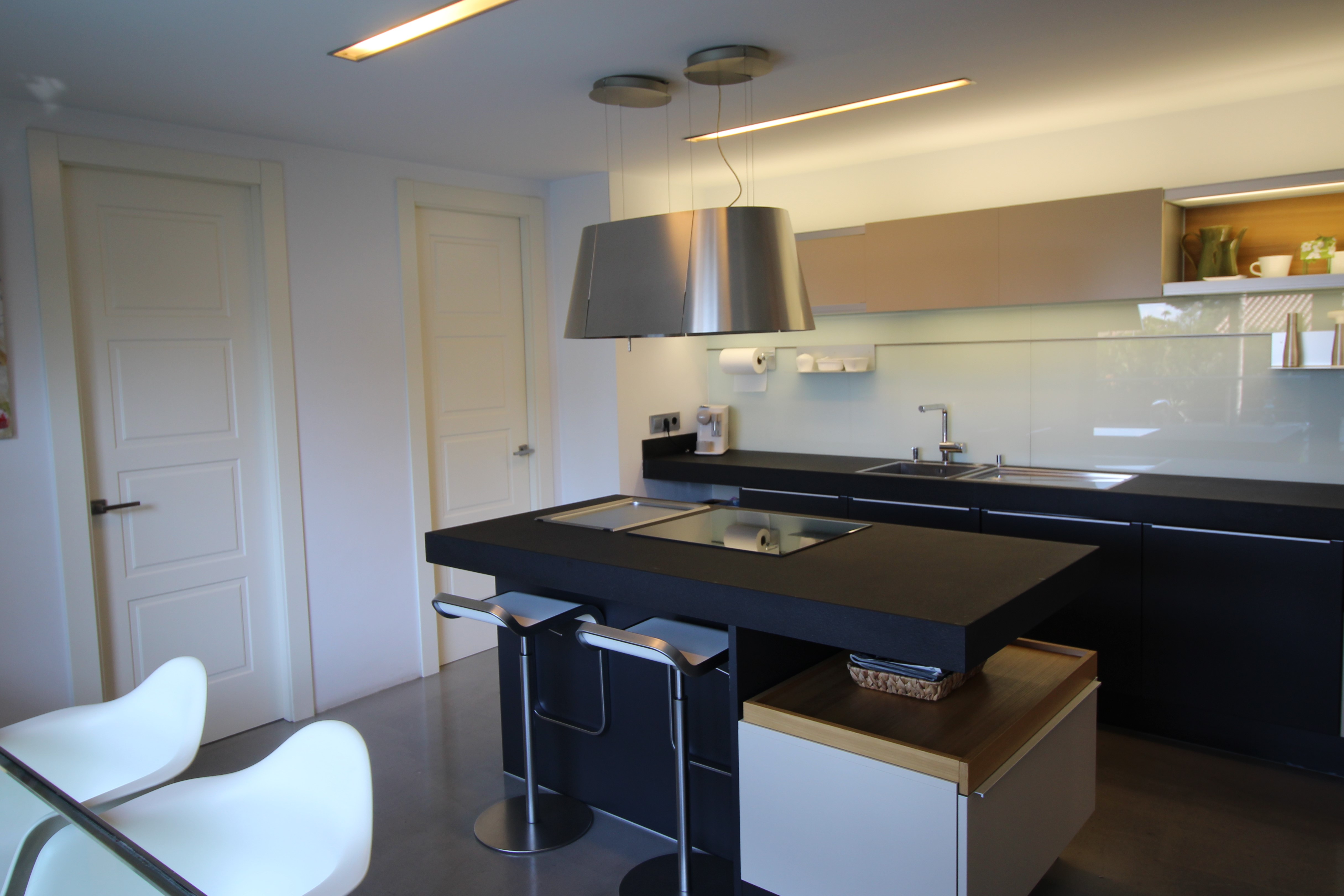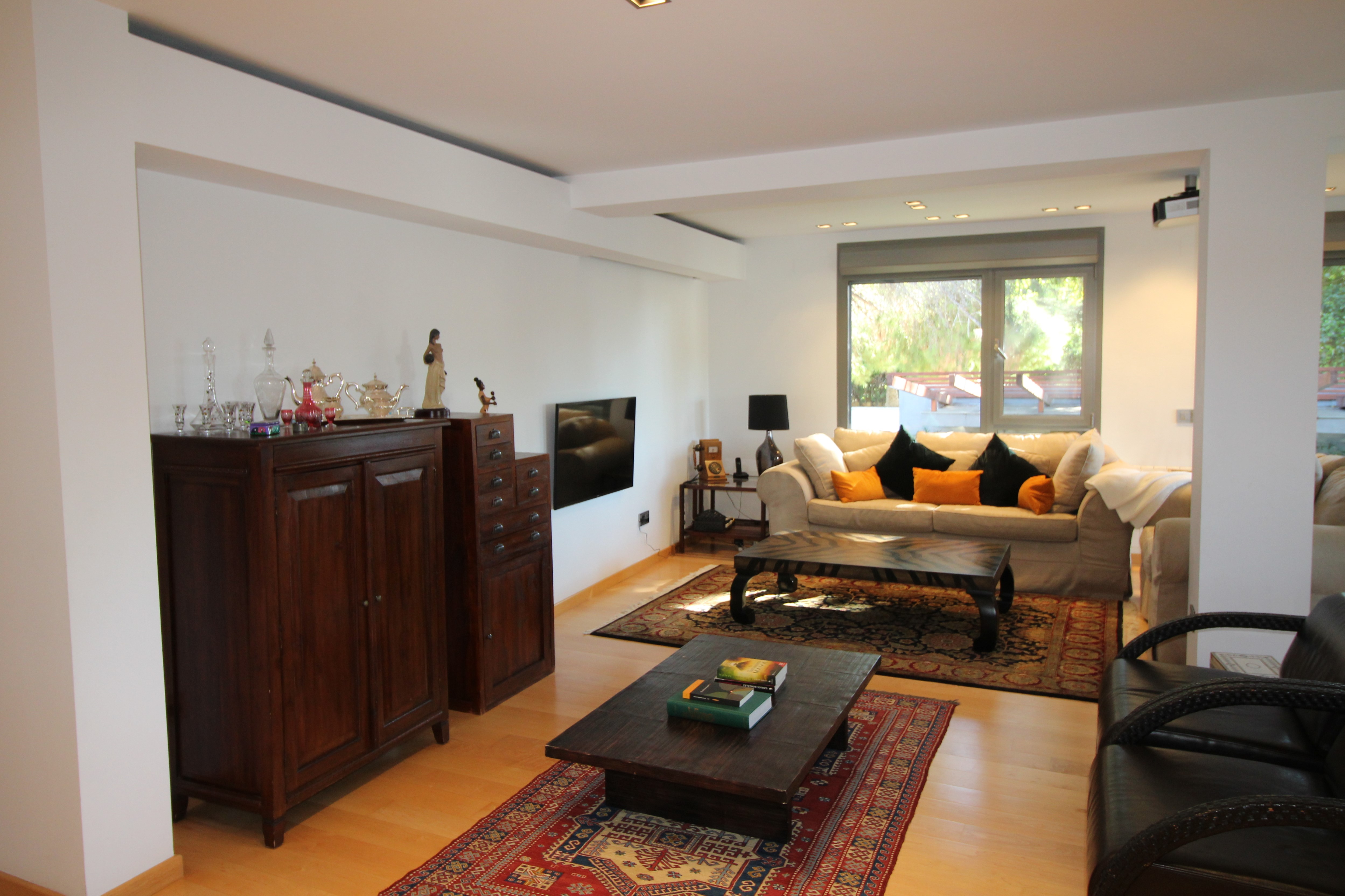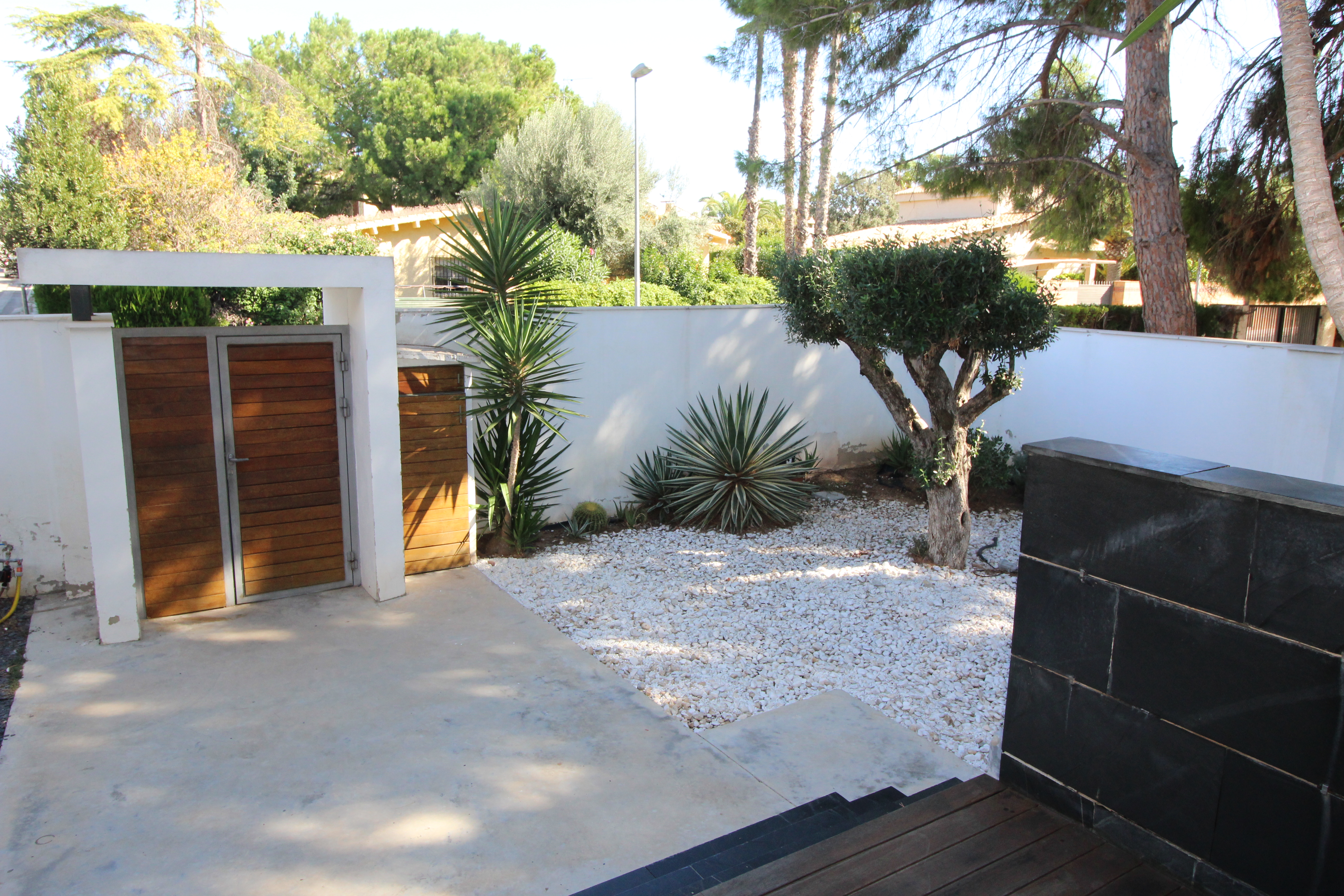 I La Eliana ligger denne storslåede luksusvilla i moderne stil spækket med den nyeste teknologi. Dejligt lyst og rummeligt. Designerkøkken af mærket Poggenpohl med højeste kvalitet inden for teknologi, design og funktionalitet. Invani Philip Starck-toiletter med fantastisk kombination af design og funktionalitet. Elektriske sikkerhedsskodder/persienner. Vinduer med dobbelt sikkerhedsglas. En villa med mange indbyggede skabe. Aircondition og central gasvarme. Husets gulve er mikrocement i køkken, parket af naturtræ inde i huset og på udendørs terrasser af teaktræ.
