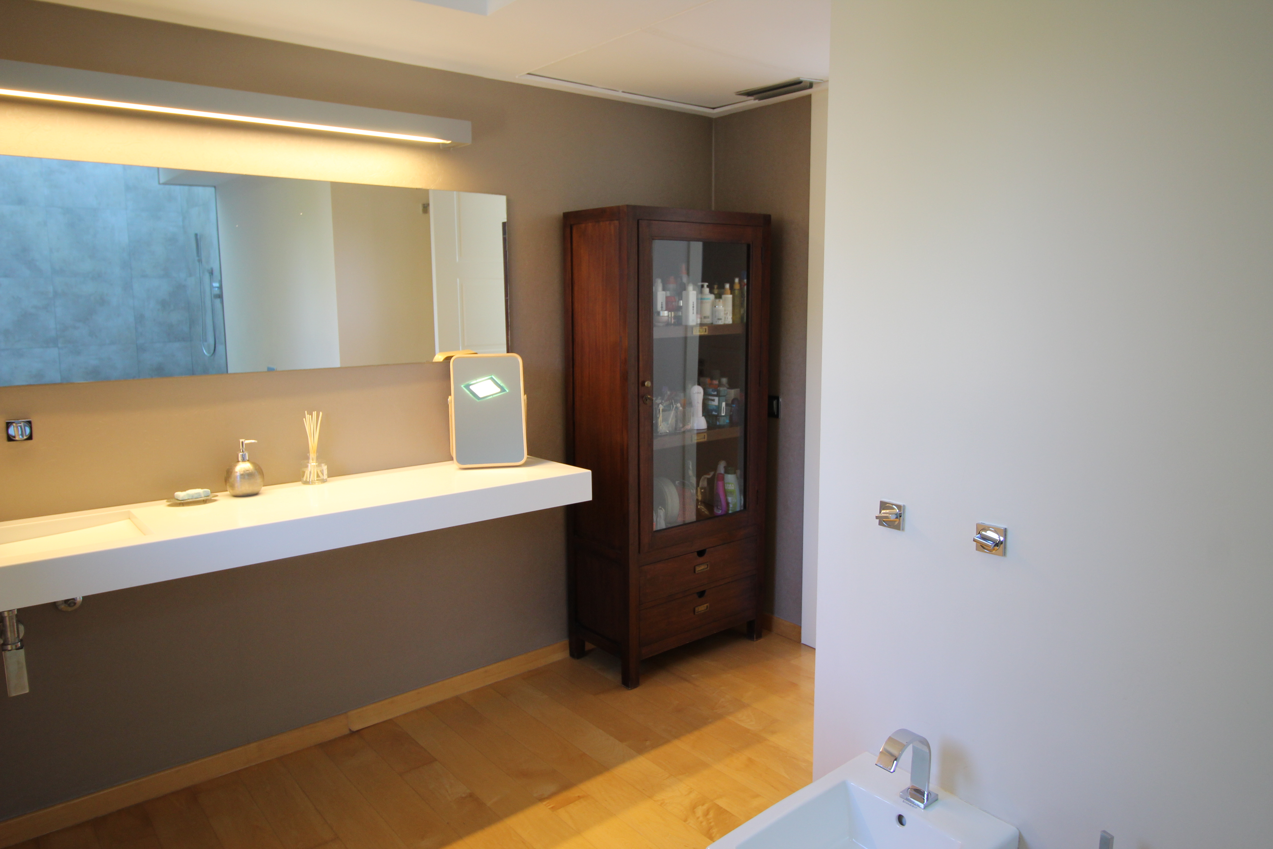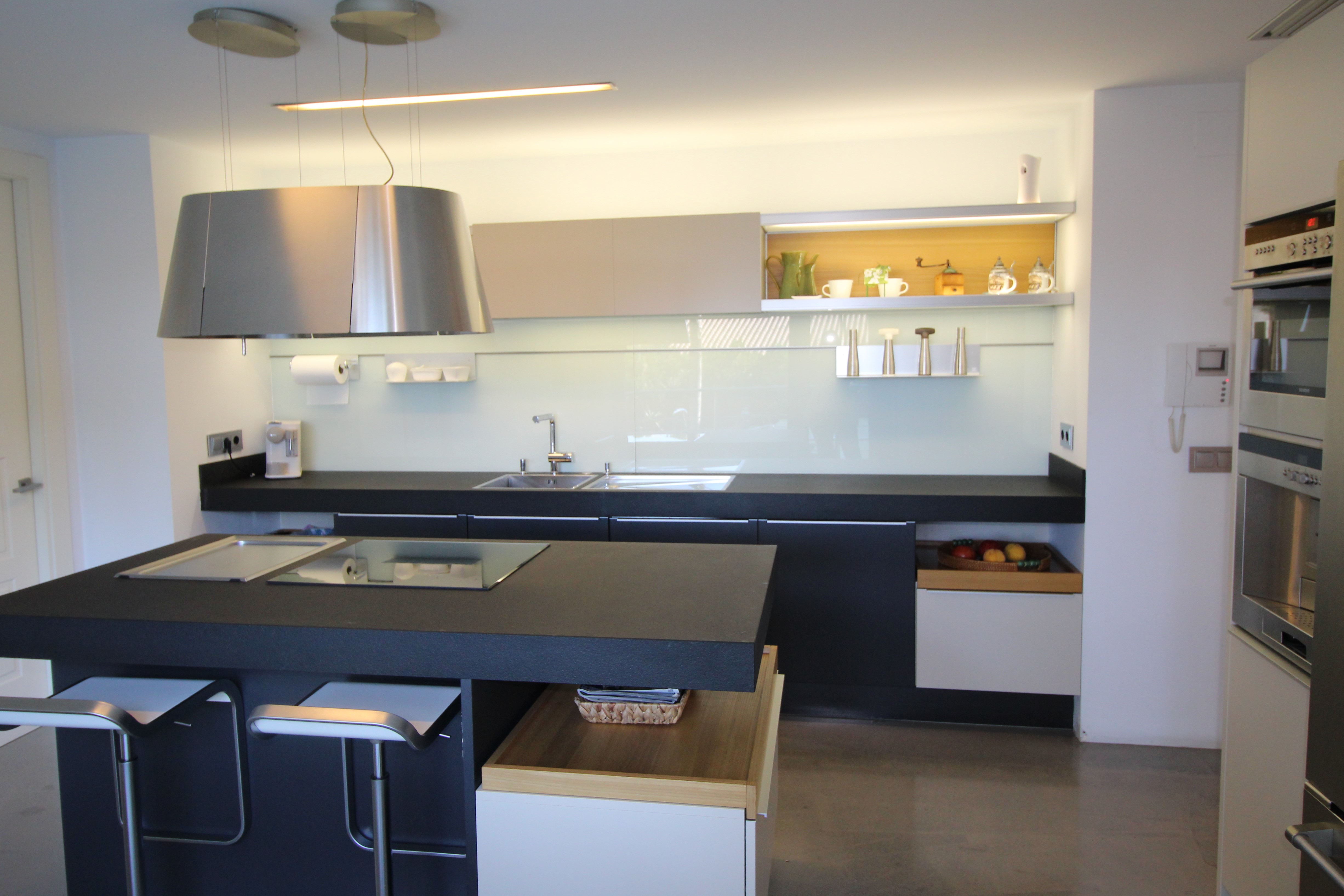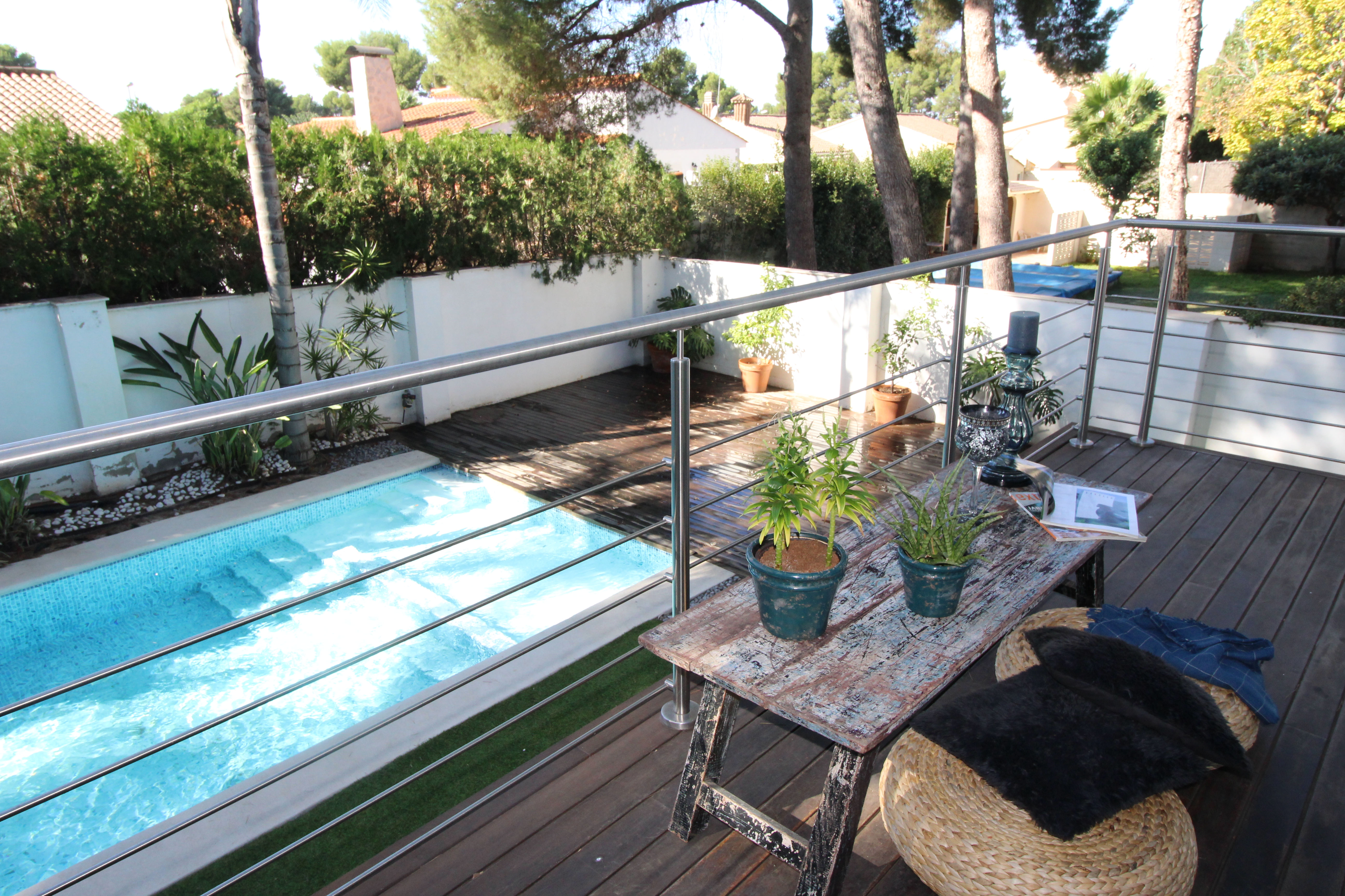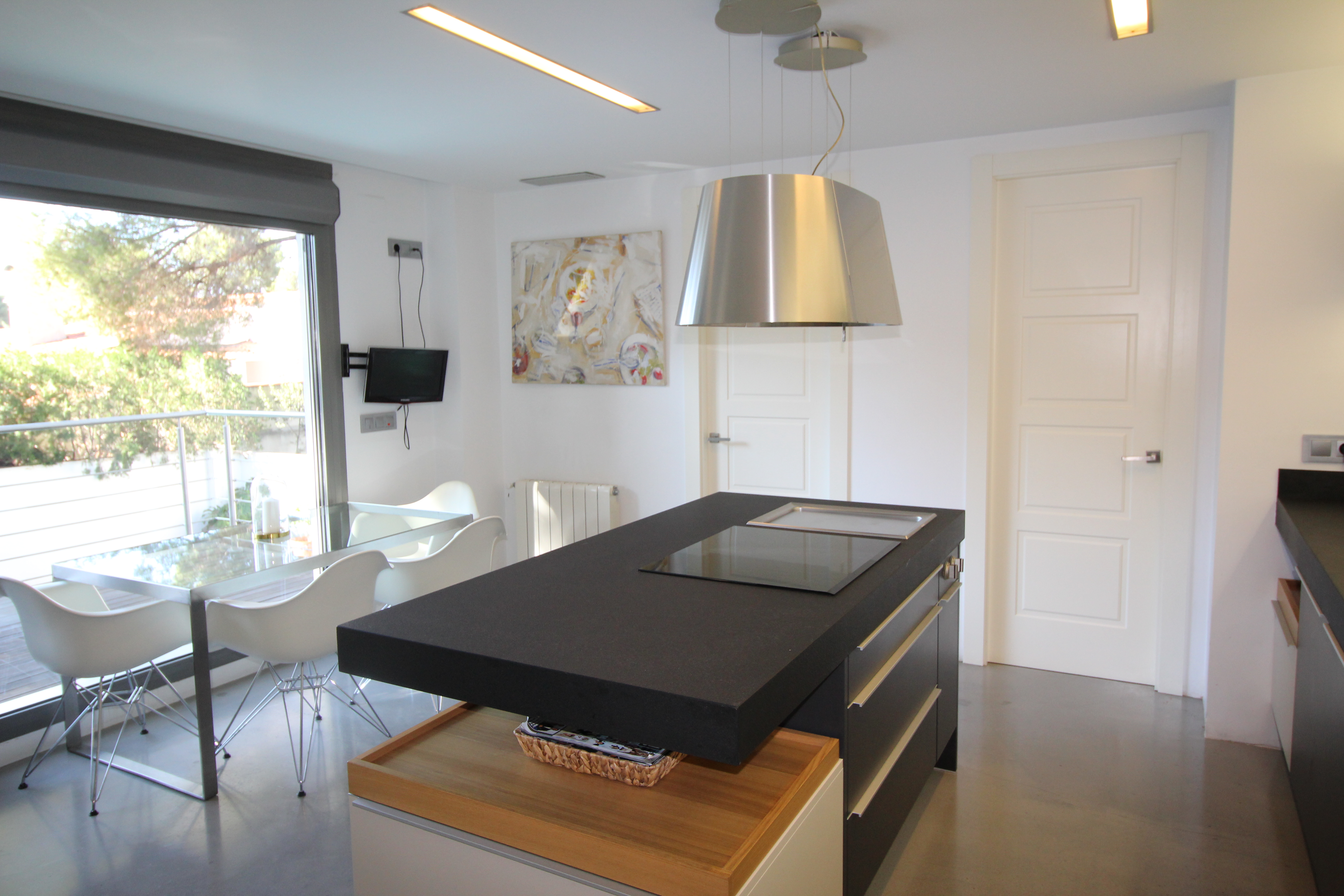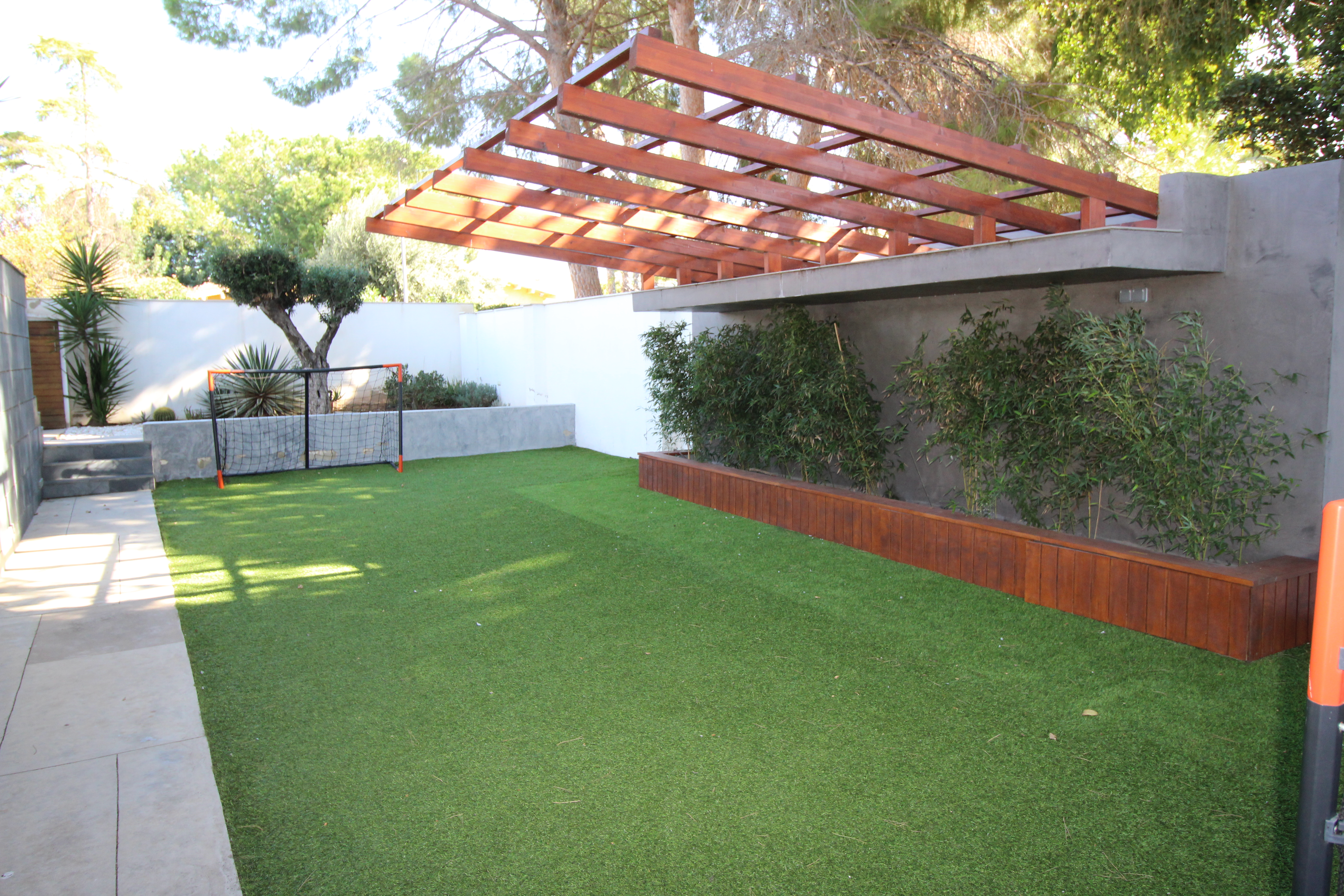 I La Eliana ligger denne storslåede luksusvilla i moderne stil spækket med den nyeste teknologi. Dejligt lyst og rummeligt. Designerkøkken af mærket Poggenpohl med højeste kvalitet inden for teknologi, design og funktionalitet. Invani Philip Starck-toiletter med fantastisk kombination af design og funktionalitet. Elektriske sikkerhedsskodder/persienner. Vinduer med dobbelt sikkerhedsglas. En villa med mange indbyggede skabe. Aircondition og central gasvarme. Husets gulve er mikrocement i køkken, parket af naturtræ inde i huset og på udendørs terrasser af teaktræ.