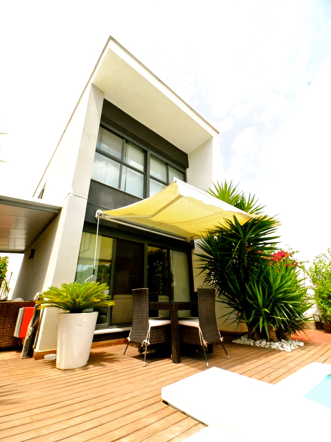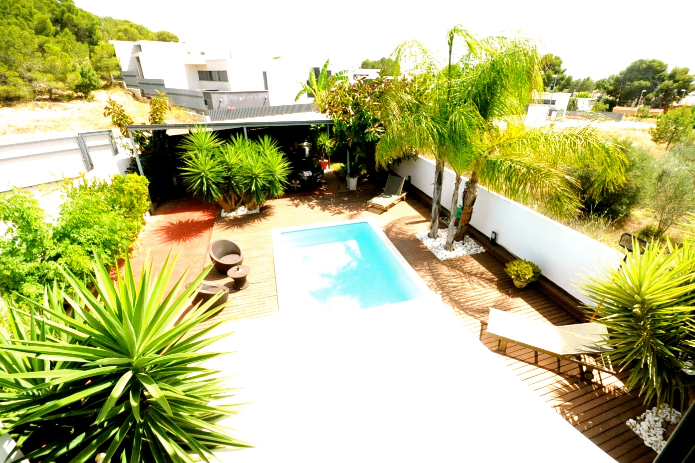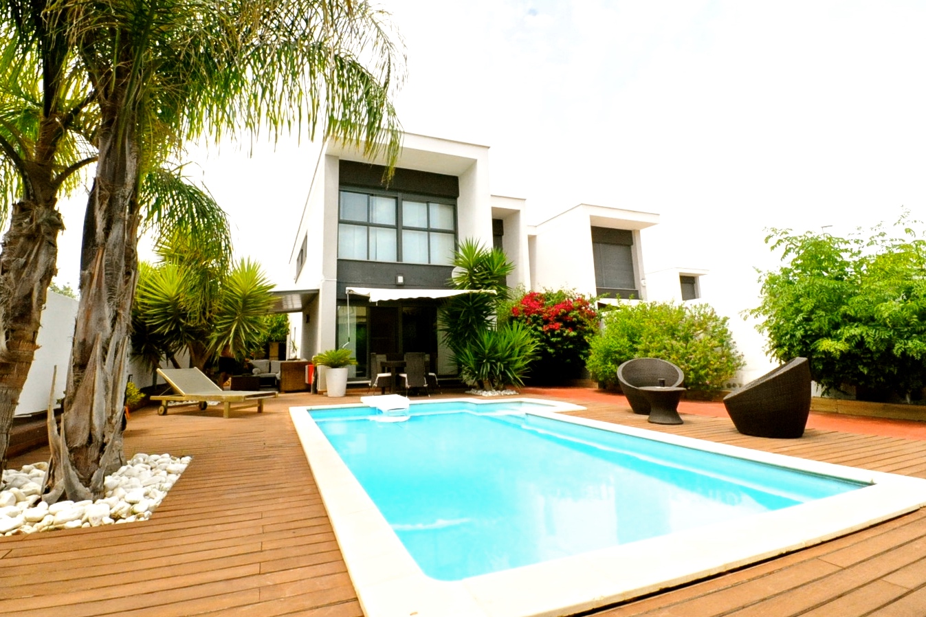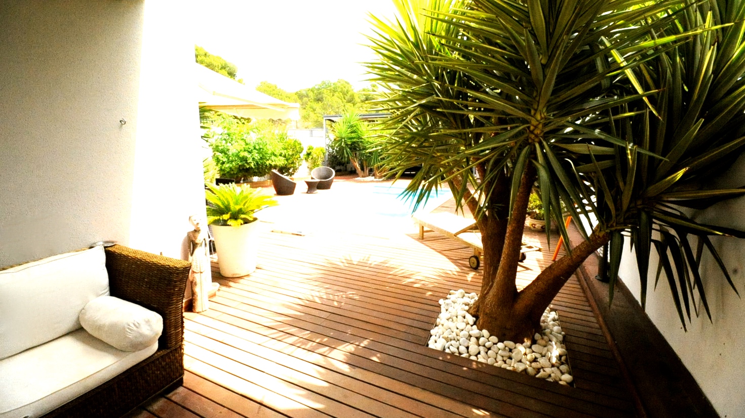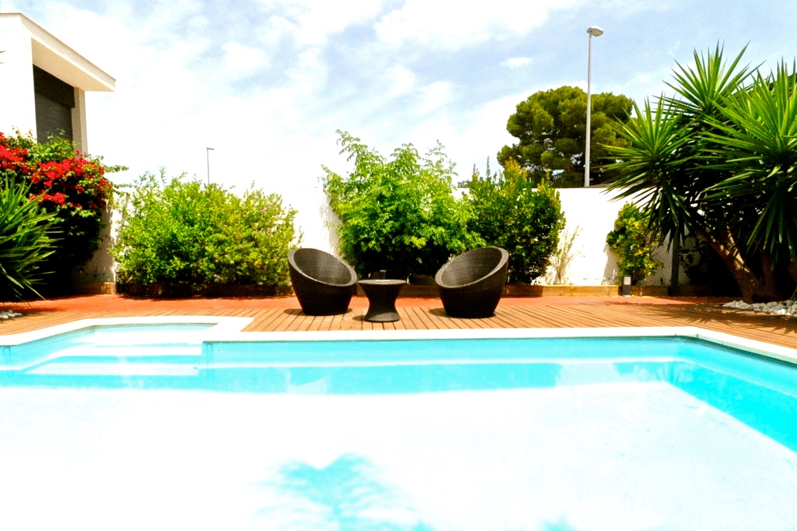Fantastisk designervilla i La Eliana, i Montesano-området. Beliggende på hjørnegrund og med meget privatliv. Smuk konsolideret have, elegant pool og stor teaktræsterrasse. Der er et udendørs opbevaringsrum til haveudstyr.