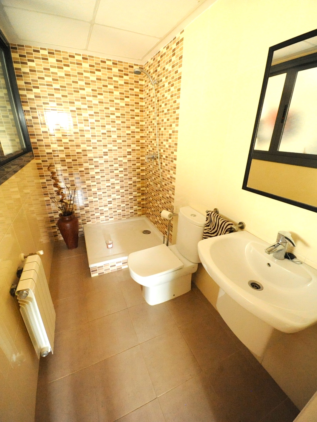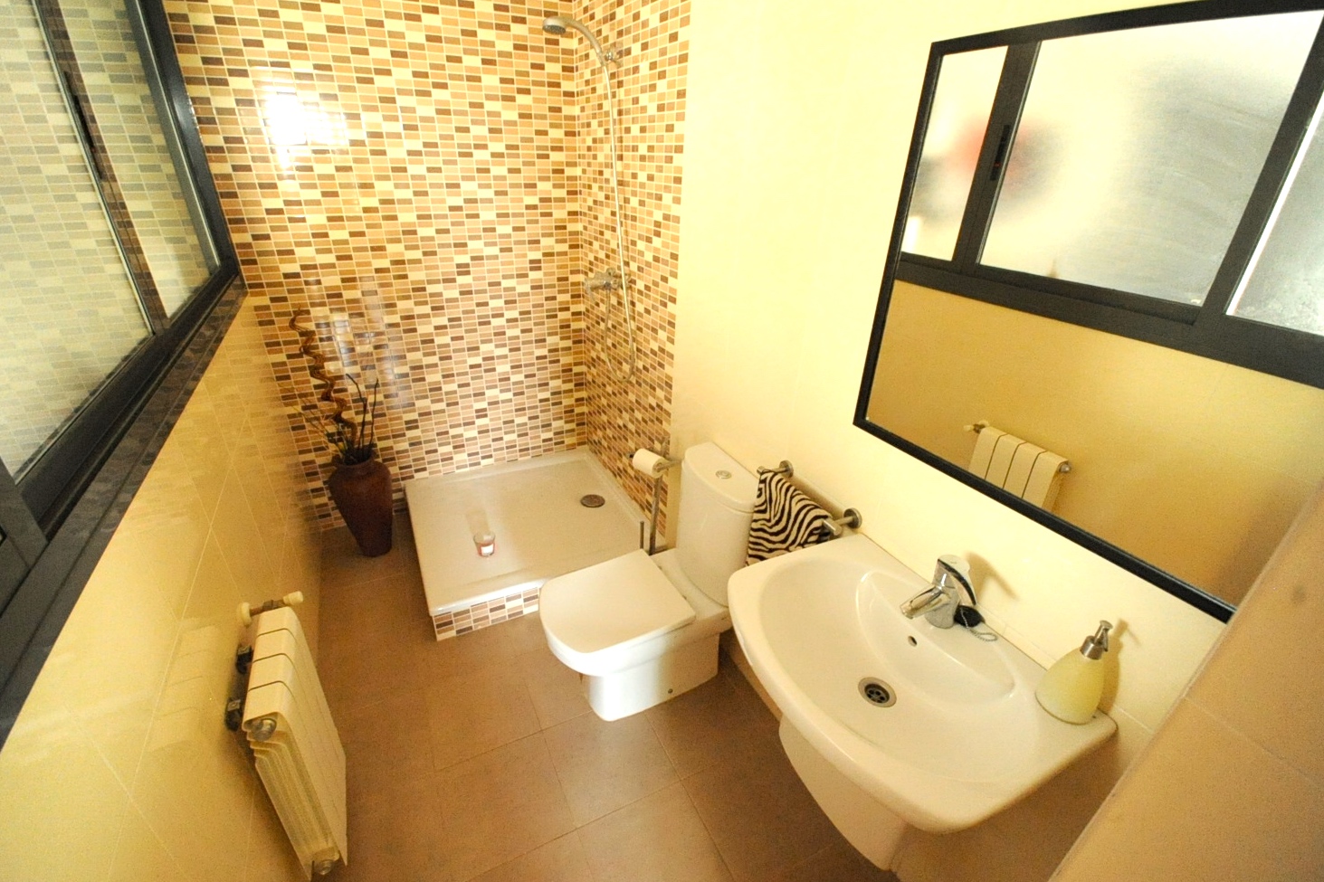 Huset er super velindrettet og med masser af lys, store vinduer, elektriske skodder, klimaanlæg med kulde/varme, centralvarme med radiatorer, gulvvarme, indbyggede skabe i alle områder af huset.