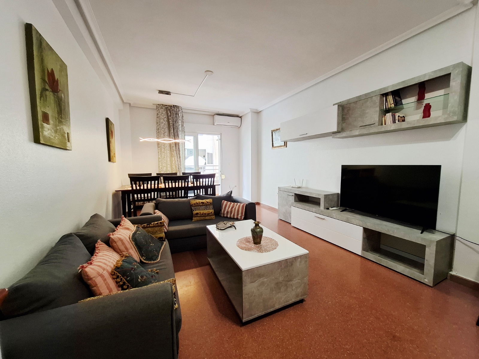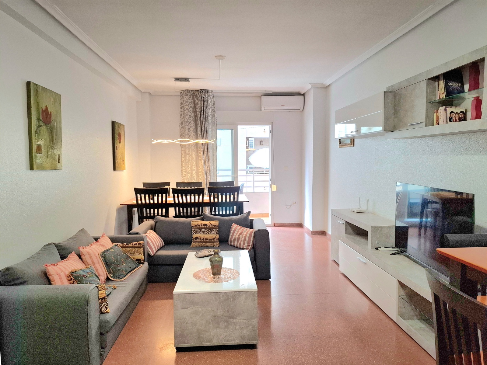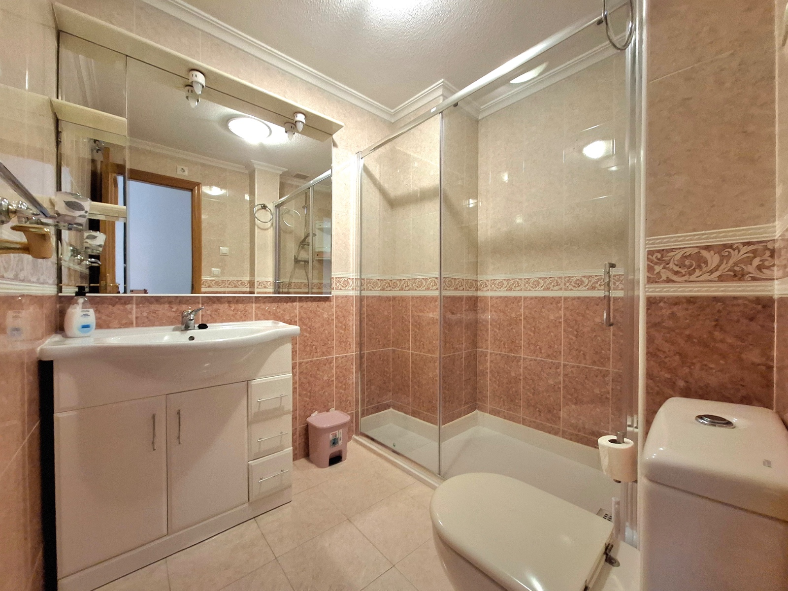Exclusive Home in the Heart of Torrevieja This spectacular 125 m² apartment is in excellent condition, tastefully renovated and ready to move into. Spacious, bright and comfortable, it is located on the first floor of a building with an elevator, right in the center of Torrevieja, next to Plaza de la Ermita. The layout makes the most of every room: an independent living room with access to the terrace, three bedrooms with built-in wardrobes, two full bathrooms (one with a bathtub and the other en suite with a shower), and a separate kitchen with direct access to a private patio. In addition, it includes a private storage room on the communal rooftop terrace, providing extra convenience and space. The property has been renovated with high-quality materials and comes fully furnished and equipped, with air conditioning in all rooms, double-glazed windows, and exceptional natural light that creates a warm and welcoming atmosphere throughout the day. Its location is unbeatable. You will have everything within walking distance: supermarkets, pharmacies, schools, shops, cafés, and a wide range of leisure and dining options. The promenade and the beaches are just a short walk away, making this home a unique opportunity to enjoy the Mediterranean lifestyle all year round. A property that combines space, comfort, and a privileged location—perfect both as a permanent residence and as an investment.