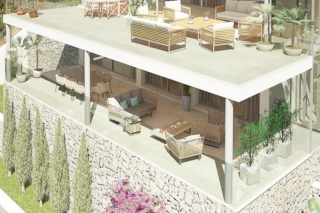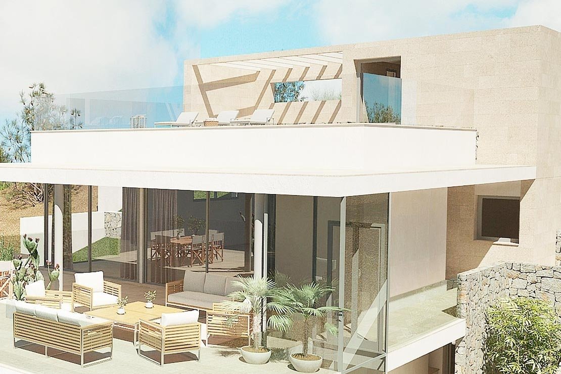 This impressive dream villa combines contemporary design with Mallorcan tradition, offering panoramic views of the sea and the Canyamel golf course.. . Located on a hillside plot of approximately 1,000 m2, this newly built property is adjacent to the spectacular "Cap Vermell" golf course and within walking distance of a picturesque bay.. . Distributed over three levels and 410 m2 of living space, on the first floor there are three bedrooms with en-suite bathrooms and access to a covered terrace. On the second floor there is a fully equipped designer kitchen, a large open area with dining room and living room, a bathroom, another room that can be used as an office or another bedroom and also access to a covered terrace. The covered terraces have a total area of 135 m2.. . On the lower floor there is a fitness room, a sauna and a wine cellar. All floors have easy access. through stairs elevator.. . The pool is located on the roof terrace, from where you have a fantastic view of the turquoise sea and the golf course.. . The villa was built with only the highest quality materials and is equally captivating with the European design furniture used.. . The taxes corresponding to the purchase, as well as notary and property registration expenses, are not included in the price.. . This villa is a dream property that offers luxury, comfort and an enviable location. Contact us for more information and to arrange a visit!