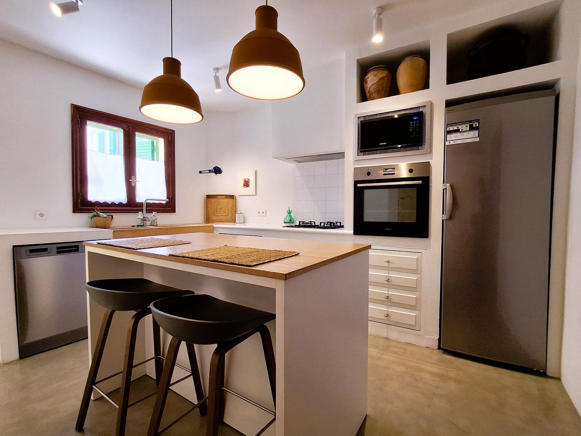Wonderful dream house in the charming town of Capdepera.. The property has a mix of different styles, which makes it modern, cozy and very practical. This home is located in a strategic area, completely close to the town's points of interest: the shopping area, medical center, school, music school, parking, etc.... The house is renovated and very well equipped. . The property is divided into three floors: cellar, ground floor and first floor.. On the ground floor we find a bright and fantastic living room, which has direct access to the balcony with views to the outside.. On the same floor we find a pantry that can serve as a closet or as a small storage room. There is also a dining room and next to it is the kitchen.. The kitchen is designer and has lots of light, space and furniture for storing utensils and kitchenware. It is also fully equipped with stainless steel appliances and in the center it has a beautiful island to enjoy breakfast in the morning.. Following the kitchen, in the hallway under the stairs there is a small closet that serves as a gallery and in front of it we find a complete bathroom with a shower.. The soil material of this plant is microcement. The windows, blinds, doors and beams are made of wood. And they are the originals of the house.. On the first floor we find the bedrooms. Two of them are doubles and one single with an en-suite bathroom. On this same floor there is a complete double bathroom with a shower tray.. The floor material on this floor is hydraulic tile and in the hallway there is a beautiful custom-made closet to store bed linen.. From this floor, climbing some stairs you can access a small terrace, from which we can enjoy spectacular panoramic views of Capdepera. There is also another terrace with a stoneware floor, ideal for use as a solarium or chill out area.. All bedrooms and the living room have air conditioning (hot/cold).. Important information:. Furniture is not included.. Purchase taxes, notary fees and property registration are not included in the price.. We are also builders and we offer all kinds of advice for possible renovations.. Don't miss this unique opportunity to acquire a renovated house ready to move into in Capdepera! Come and discover your new home today.