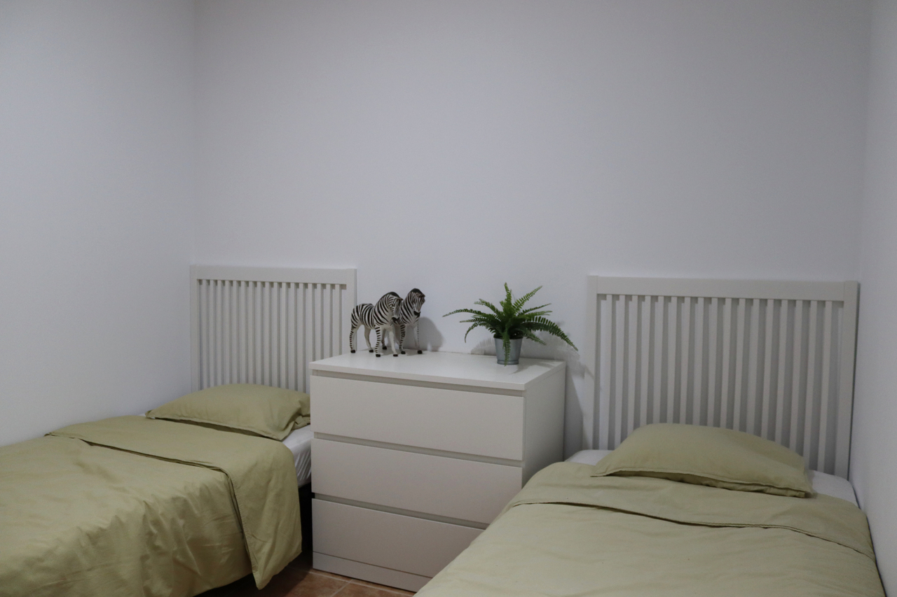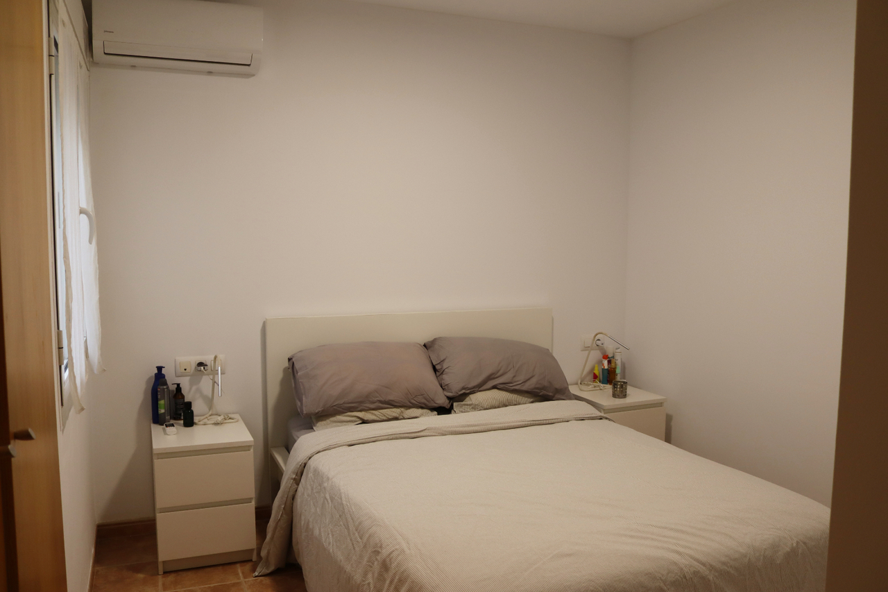 Long term or Seasonal rentalBenigembla - 2 Bedroom, 1 Bathroom Ground Floor Apartment with communal pool and private parking. The accommodation comprises:Open lounge with American style kitchen with H/C A/C Double bedroom 1 with built in wardrobes and sliding french doors opening to an inner private patio Double bedroom 2 with built in wardrobes and H/C A/C Family bathroom with bath with shower over, basin and WCThe property benefits from being on the ground floor with private parking space and small covered terrace to the front of the property with communal pool and mountain views from the terrace. The property is just a few minutes walk into the village with 3 bars with restaurants, bakery, pharmacy, medical surgery and village school. The larger towns of both Jalon and Orba are just a 10 minute drive away with a wider choice of bars and restaurants as well as larger supermarkets, independent local shops and bodegas and other services including builders merchants, banks etc.This property is available for long term rental or seasonal rental - 750€ pcm plus bills. Please contact us for further information.Please contact us for available datesPlease note this is a non smoking property and pets are not allowed.