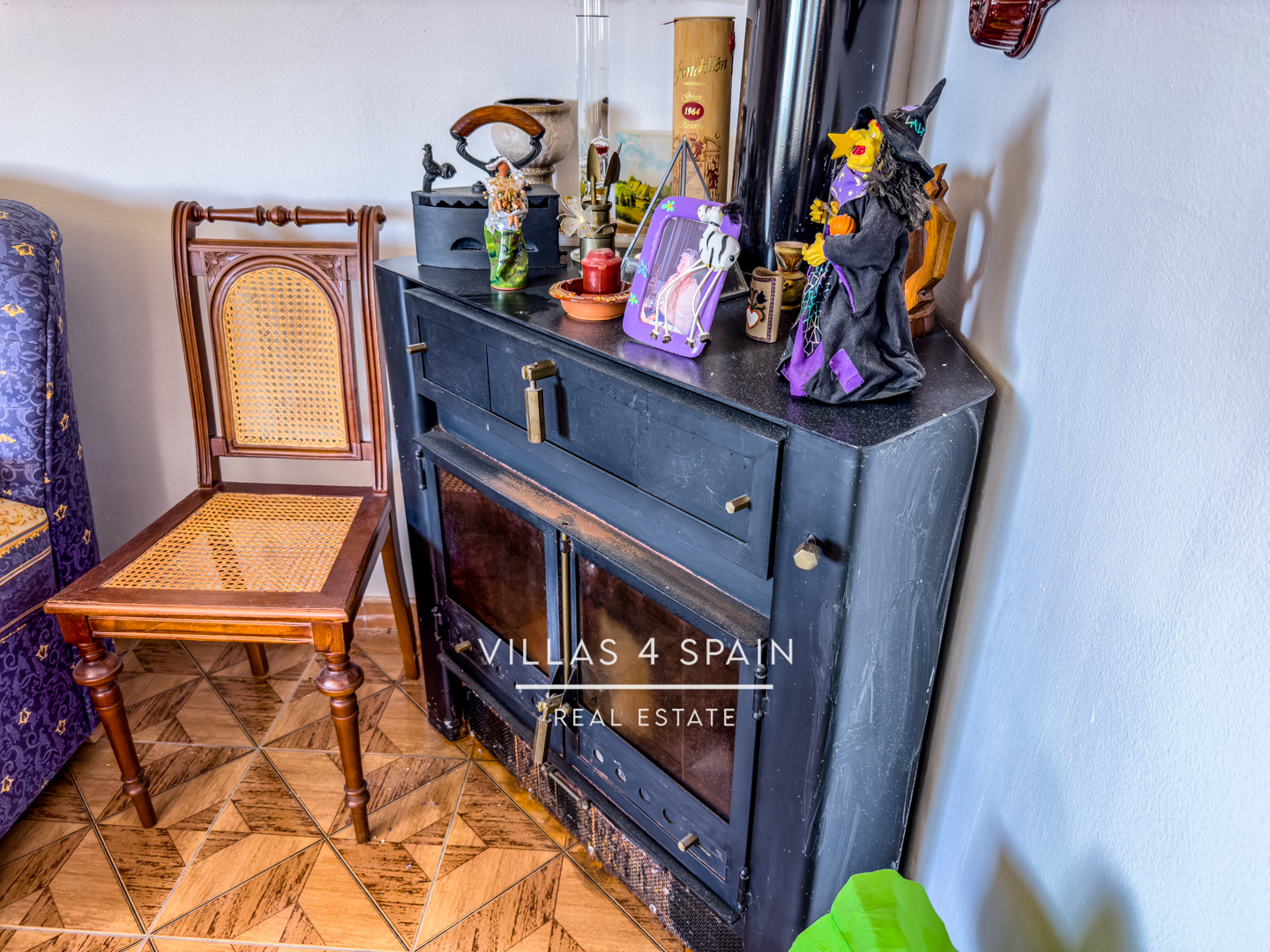 Træd indenfor i en stor, solbeskinnet vinterhave, der i øjeblikket bruges som spisestue, og som fungerer som hjemmets hjerte. Herfra giver to sikre døre fleksibel adgang. Den første fører til det primære opholdsområde, hvor en hyggelig indbygget pejs skaber en varm atmosfære. Store skydevinduer oversvømmer rummet med naturligt lys og indrammer den spektakulære udsigt over de omkringliggende bjerge. Længere nede ad gangen finder du et veludstyret køkken med masser af opbevaringsplads og bordplads, der støder op til et rummeligt bryggers for ekstra bekvemmelighed. Overfor køkkenet er der et moderne badeværelse med et elegant bruseniche, og for enden af gangen tilbyder det rummelige soveværelse et fredeligt tilflugtssted.