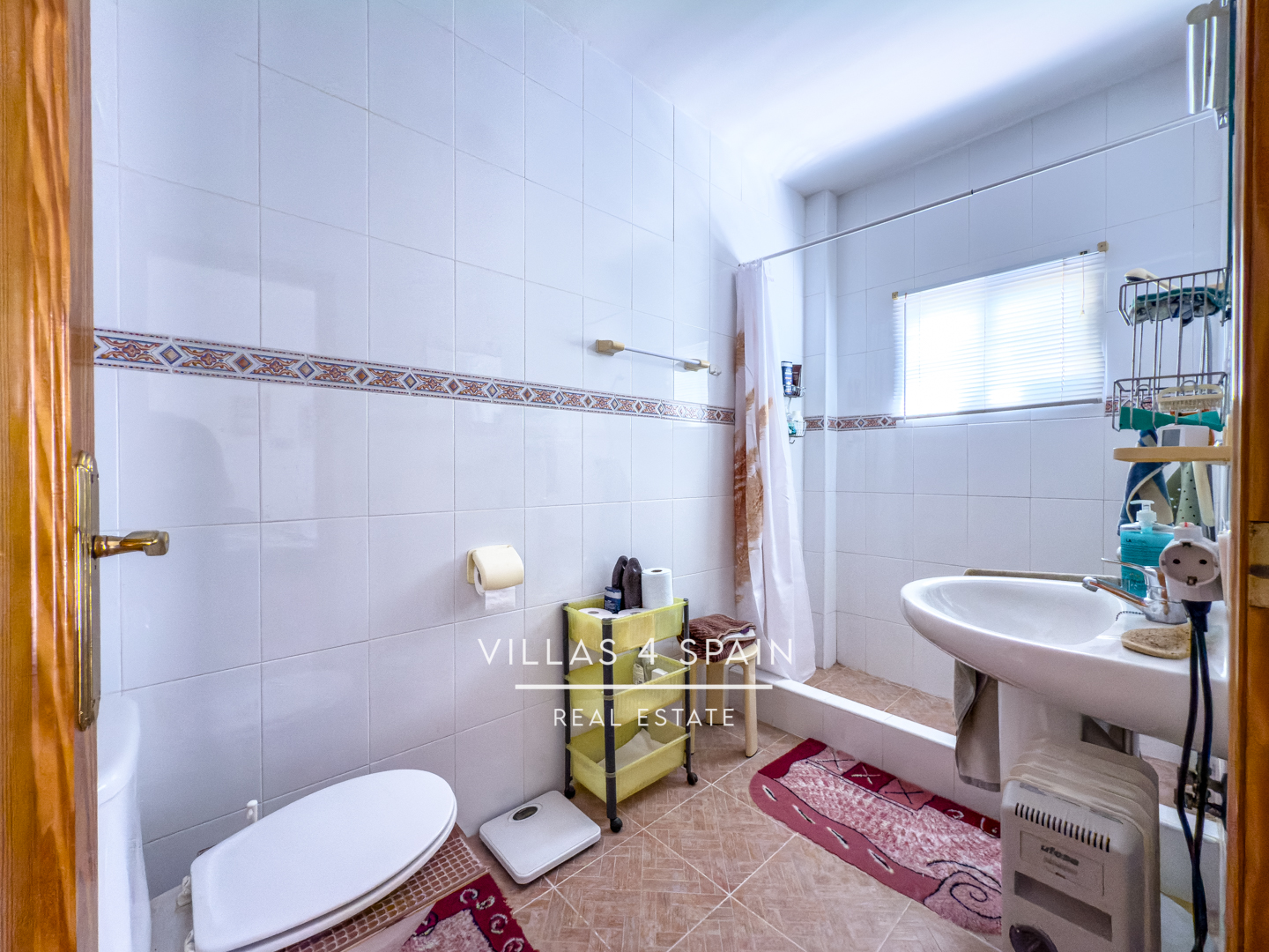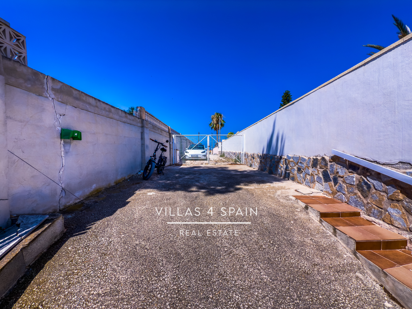 Udenfor har det underliggende område et stort potentiale. Dette store rum, der allerede er udstyret med et badeværelse, kan nemt omdannes til et fuldt funktionelt gæstehus, et ekstra soveværelse eller endda et hjemmekontor, hvilket gør denne ejendom til en alsidig investering. Med sin førsteklasses beliggenhed og uendelige muligheder tilbyder denne villa en unik mulighed for at skabe dit perfekte hjem.