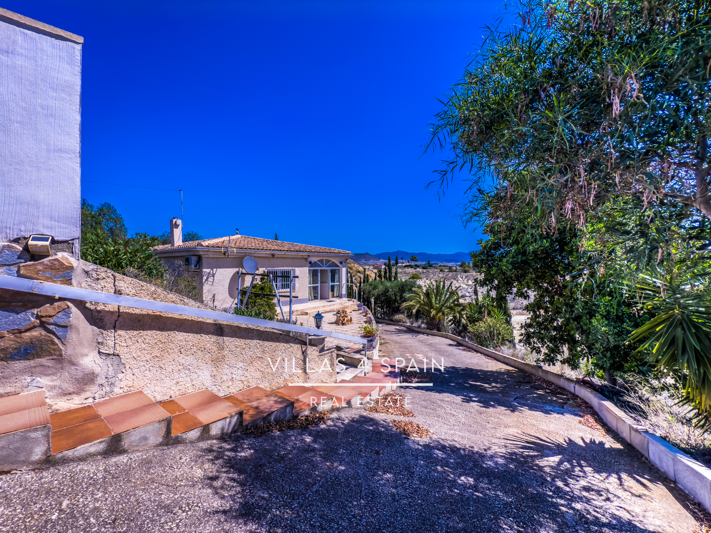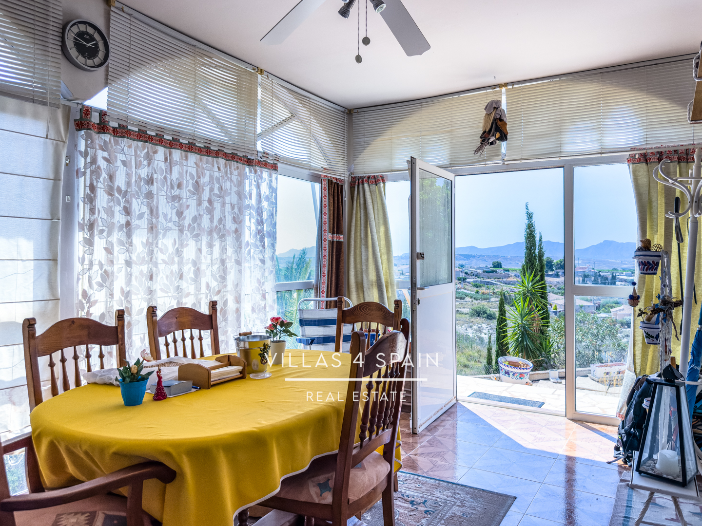 Velkommen til denne exceptionelle villa med 2 soveværelser og 3 badeværelser i hjertet af Los Baños de Fortuna, Murcia, der tilbyder et utroligt potentiale for et gæstehus i underetagen med en betagende udsigt over bjergene.